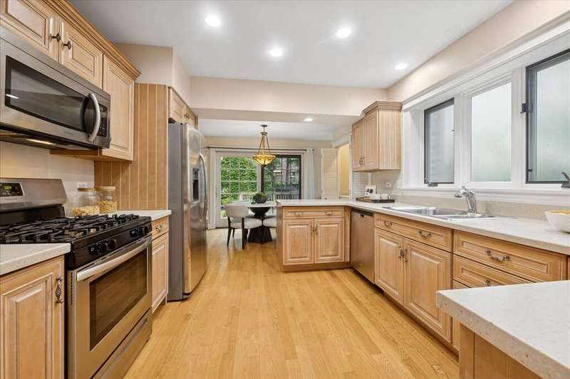 Charming and expanded Old Town Western Springs home in a top-rated school district-just a short walk to schools, downtown shops and restaurants, the train, pool, and parks! Hardwood floors, recently refinished, throughout most of the main level (excluding living room). The open-concept kitchen flows into the breakfast area and vaulted-ceiling family room, perfect for everyday living and entertaining. A separate dining room offers space for more formal gatherings. The primary suite provides a private retreat, while the flexible fourth bedroom works beautifully as an office (the post can be removed if desired). Step outside through sliding glass doors to the pretty backyard with deck. The open 2.5 car garage port provides covered parking and is accessed via the alley. Major updates include new HVAC in 2020/2021.
