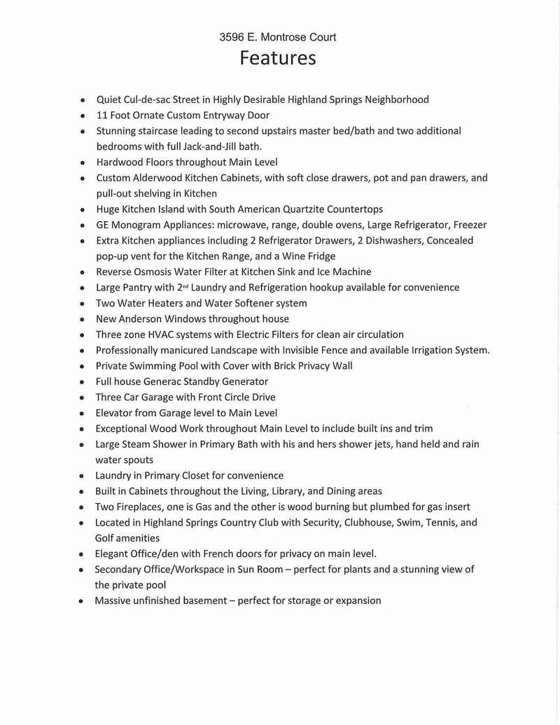 You will love and enjoy all the wonderful and elegant features of this beautiful home in Highland Springs! It sits on a private corner lot with a circle drive, inground pool and quiet cul-de-sac street. The stunning entryway greets you with an eleven foot custom door and gorgeous curved staircase. The kitchen is incredible with a huge island and abundance of custom cabinets and beamed ceiling. Built in independent refrigerator and freezer along with two additional refrigerated drawers, two dishwashers GE monogram and Bosch, imported quartzite counter-tops, two monogram GE ovens, high-end 6 burner gas cooktop, microwave and wine cooler. The recently renovated ground floor has hardwood flooring throughout, fabulous woodwork and built-ins along with updated Andersen windows. The master bedroom and bath are on the main level. The master bath shower is amazing offering steam, rainfall shower head, his and her full body showers, heated seats and floor. It's perfect for a quick clean or a luxurious, indulgent and lingering time. Upstairs leads to three bedrooms and two full baths. The lower level is enormous, perfect for storage or to be finished to your personal taste. Home Warranty provided!