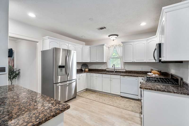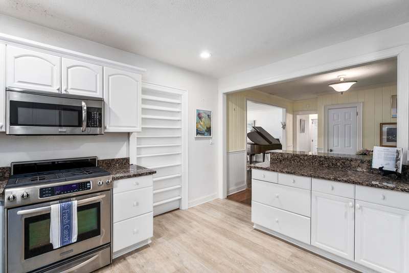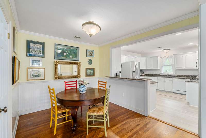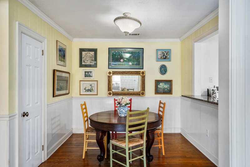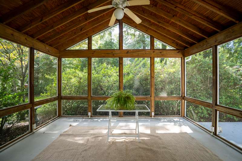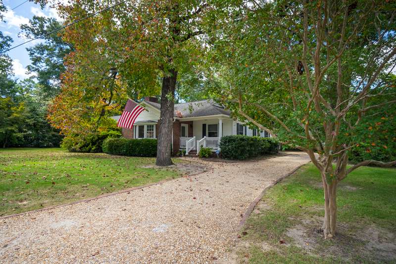 Charming & renovated one-level, 3 bedroom, 3 bath ranch home on a generous corner lot is now available in one of Aiken's desirable midtown neighborhoods, close to The Fresh Market, Hitchcock Woods, Horse District, Palmetto and Aiken Golf Clubs, Aiken Horse Park and tennis, pickleball & facilities at O'Dell Weeks Park. Arrive home to a lovely landscape of established dogwoods, magnolia, tea olive and azaleas that can be enjoyed from both the front porch and the privacy of the newly added side screened porch. Step inside to a large living room graced by a beautiful bay window, hardwood floors and central fireplace. The living room's scale can accommodate multiple seating areas, fun for casual gatherings. The living room opens to an inviting dining area with painted panel walls, and a nearby cozy den is perfect for a home office or TV room. The kitchen is just around the corner - you will love the scale, generous cabinet and granite counterspace, stainless appliances, including a newer French Door refrigerator and gas range. A window over the sink gives you a peek to when a friend pulls in the driveway & the color of the blooms and leaves as the seasons change. This home has a split bedroom floor plan with 2 bedrooms and 2 full, updated baths found on the southside of the home. A hallway behind the kitchen leads past a large full bath, generous bedroom and walk-in laundry room from which you can access the lush backyard or the one-bay garage with a useful, walk-in storage room. The backyard is quite tranquil with lush lawn and perimeter plantings - a place for play, quiet conversation or meditation. Lounge on the patio or step inside the screened porch with vaulted ceiling to enjoy the fragrant tea olive, morning birds & golden hour. French doors connect the screened porch to one of the home's southside bedrooms that you may find you want to multi-purpose as a home office or den. Functional details include a new 2025 HVAC system and termite bond with Aiken Pest Control. This home is well suited as a full-time or seasonal residence. Don't miss this delightfully appealing property!