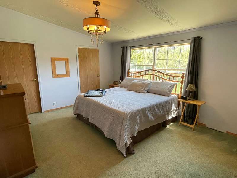 This country ranch home offers three bedrooms with a bonus nursery/den/craft room attached to the primary bedroom and ensuite. The kitchen is bright and spacious with a center island and big pantry. There's lots of extra storage space here, and the home is heated with propane and wood. The acreage is a mix of hardwoods (check out an aerial), and with a special use permit could accommodate horses! There are groomed trails throughout the parcel along with an open meadow dotted with lilacs, trillium and maybe some seasonal morels. Just 3 miles north from Hessel's blinking light and 30 minutes northeast of the Mackinac Bridge. Restaurants, library, community center, public beaches all nearby.
