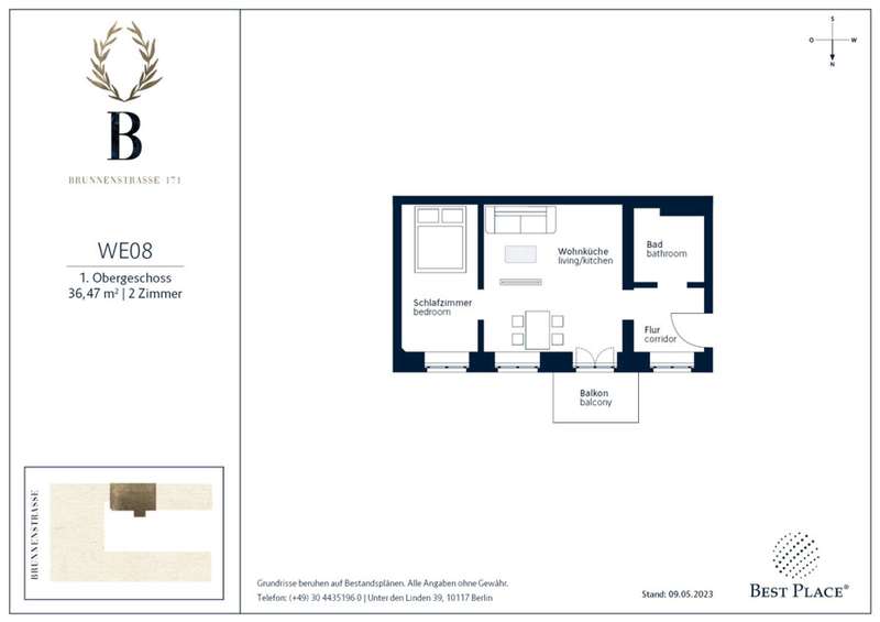 The Wilhelminian style house "Brunnenstraße 171" was built in 1900 and radiates the timeless elegance of the Wilhelminian era with its classic Berlin façade. The ensemble consisting of a front house, side wing and a coach house, this magnificent building offers a total of 20 flats and two commercial units. The flats are partly rented, are accessed via a charming staircase and have 2 to 4 rooms with a living space of 36 to 113 sqm. Balconies and terraces on the courtyard side, including a roof terrace on the upper floor, ensure cosy hours outdoors. The lovingly maintained inner courtyard with bicycle parking spaces not only invites you to relax, but also offers additional respite from the hustle and bustle of everyday life. If you want to invest in the heart of Berlin's Mitte, this is the place for you.