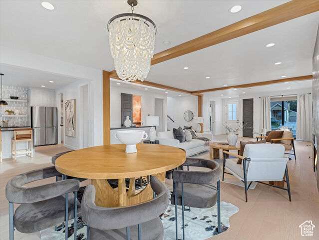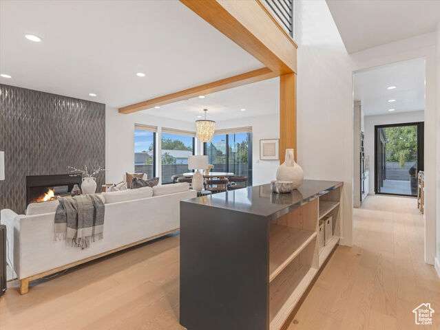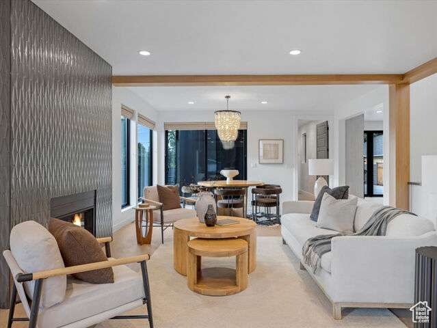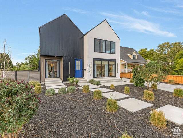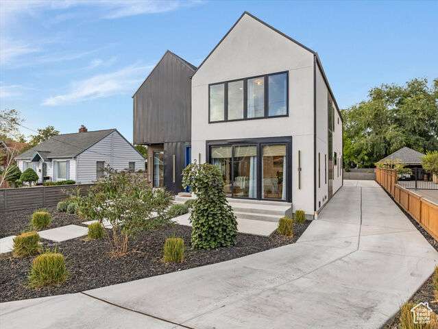 Don't miss this rare opportunity to own a sophisticated, newly built residence in the sought-after East Millcreek area! Built in 2022, this exceptional home seamlessly combines smart design, premium finishes, and a prime location. The eye-catching exterior features expansive windows, crisp white stucco, architectural metal roofing, and contemporary metal accents. A thoughtfully landscaped front yard leads to a welcoming entry patio and custom front door, setting the stage for the elegance within. Inside, the home offers an abundance of natural light and a warm, open ambiance highlighted by exposed beams, soaring ceilings, oversized doors, designer lighting, modern iron railings, and rich hardwood flooring. The versatile layout includes 6 bedrooms, 5 bathrooms, a formal living room or den, spacious great room, mudroom, open loft, home theater, recreation room, and an oversized 4-car garage. The kitchen is a culinary showpiece with a generous center island, top-of-the-line stainless steel appliances, gas range, double ovens, custom tile backsplash, floating shelves, waterfall-edge quartz countertops, statement pendant lights, and abundant custom cabinetry. A full-size refrigerator is included. The adjacent butler's pantry offers extra prep space and storage-perfect for entertaining. Dine casually at the island or in the inviting dining area. The adjacent great room is designed for gathering, centered around a gas fireplace with a dramatic tile surround, and enhanced by expansive windows and a built-in bar area. From here, step outside to enjoy a private patio and fully fenced backyard complete with an in-ground trampoline-ideal for relaxation or play. Upstairs, the airy loft provides flexible space for a home office, playroom, or lounge and opens to a private deck. The serene primary suite offers a spa-inspired retreat with built-in cabinetry, dual vanities, a deep soaking tub, and a spacious walk-in shower. The fully finished basement continues the home's versatility with high ceilings and multiple living zones, including a home theater, recreation area, plumbing for a future wet bar, two bedrooms, a large Jack-and-Jill bathroom with a steam shower, and cleverly hidden storage rooms tucked behind built-in bookcases. Constructed with premium upgrades, this home includes 2x6 framing, blown-in insulation in both walls and floors, two high-efficiency furnaces, a humidifier, dual A/C units, a tankless water heater, casement windows, recessed lighting, a smart thermostat, and ceiling fans throughout. The attached 4-car garage includes a convenient faucet for car washing, a MyQ smart door system, an EV charging outlet, and ample room for storing gear, bikes, or other equipment. All of this, located just minutes from downtown Salt Lake City, the University of Utah, top-rated schools, shopping, dining, parks, Millcreek Common and world-class ski resorts. Experience luxury, comfort, and location-all in one extraordinary home.
