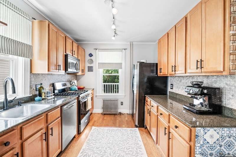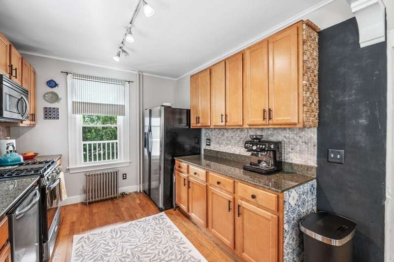 Welcome home to 20 Willow Avenue, Unit 1 in Salem: A gorgeous first-floor condo located in the desirable neighborhood of Forest River Park/Palmer Cove and featuring sparkling water views. Step inside this lovely 1000 square foot home to the open concept living/dining rooms and kitchen as well as 2 spacious bedrooms and full bathroom. The renovated kitchen features granite countertops, striking tile backsplash, shaker cabinets & stainless steel appliances. This turnkey home was updated in 2009 yet maintains charming historic details like a custom built-in, beautiful moldings, and lovely hardwood flooring. Just steps to the water - it's a perfect location to launch your paddle boards or kayaks! The private and expansive covered porch opens to a large fenced-in yard with mature landscaping, the perfect place to unwind and enjoy the ocean breezes. In-unit laundry, deleaded unit, newer boiler & water heater, basement storage & pet friendly association round out this exceptional property!