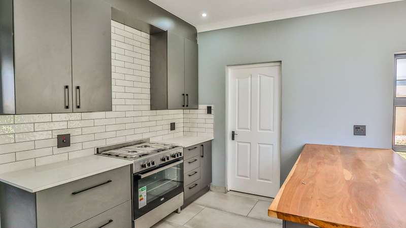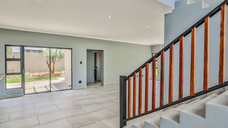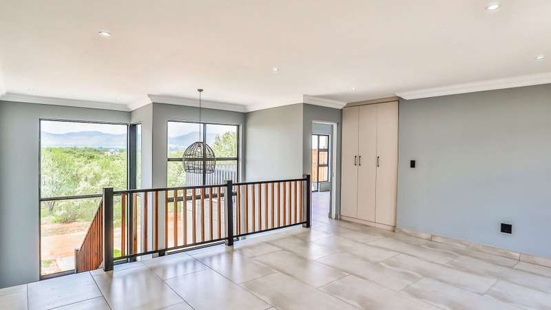 Experience the epitome of modern living at Leloko Lifestyle Estate with this exquisite newly constructed double-storey home. Merging contemporary design with practical luxury, this residence is tailored for those who appreciate both style and comfort in a peaceful, secure environment. This stunning home features four generous bedrooms, each with a private en-suite bathroom fitted with sleek, modern fixtures—creating your personal retreat in every room. The open-concept kitchen is a chef’s dream, combining high-end finishes with a functional layout. It flows effortlessly into a spacious scullery and laundry area, offering ample storage and workspace to keep your living area clutter-free. Bright, airy living areas with large windows enhance the home's welcoming atmosphere, perfect for relaxing or hosting guests. The double-story design maximizes space and privacy, with each bedroom providing a tranquil escape from the bustling living zones. Leloko Lifestyle Estate offers a secure, exclusive community with beautifully landscaped gardens, scenic walking trails, and recreational amenities that encourage an active outdoor lifestyle. Convenient access to top schools, shopping centers, and essential services ensures that everyday living is effortless and enjoyable. This property presents a rare opportunity to own a sophisticated, contemporary home in a highly sought-after estate. Whether you're seeking a family sanctuary or a stylish retreat, this residence delivers unparalleled quality and comfort. Embrace the lifestyle you deserve—schedule your viewing today and step into the elegance of this exceptional home at Leloko lifestyle estate.