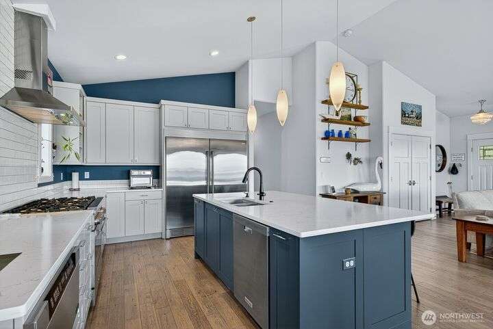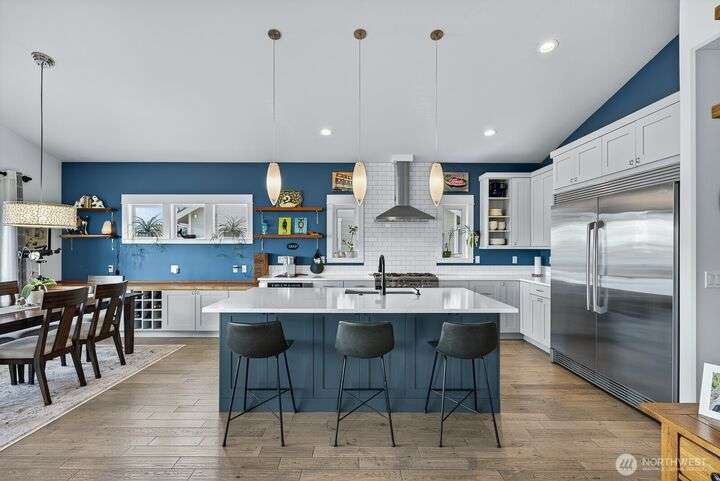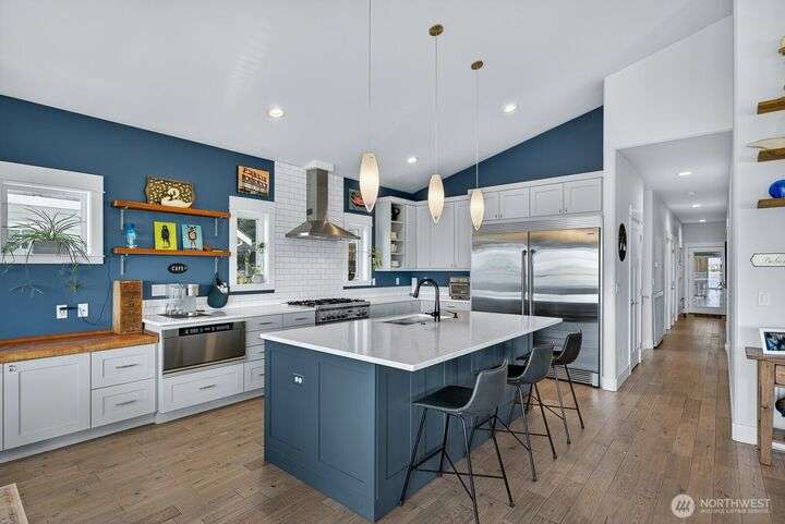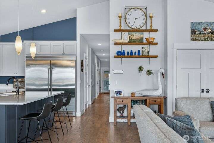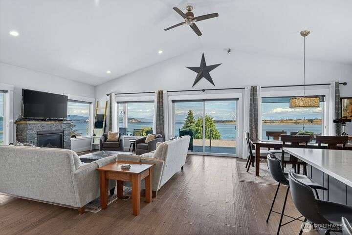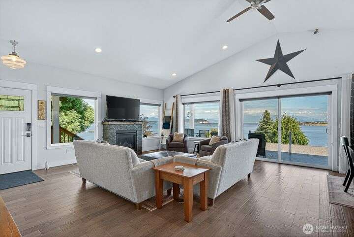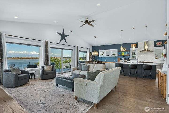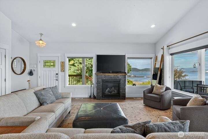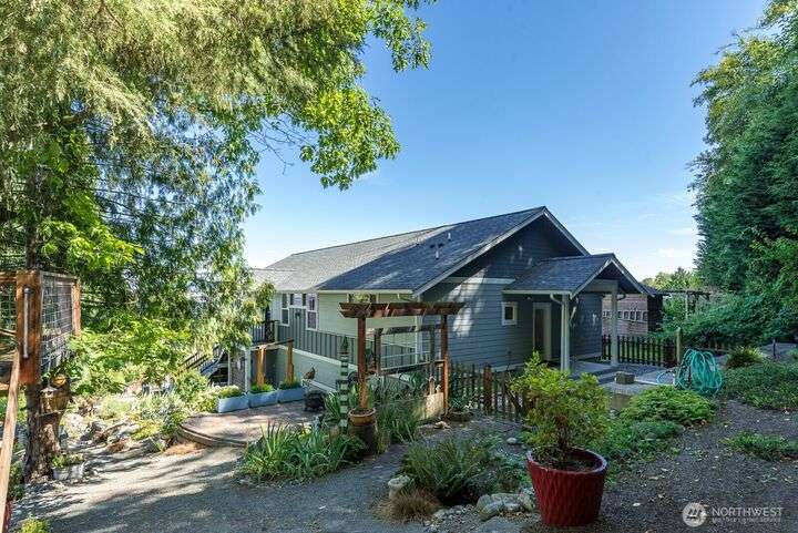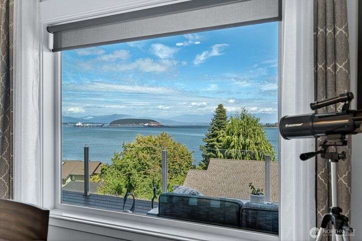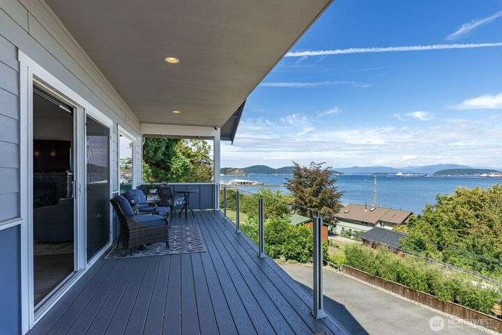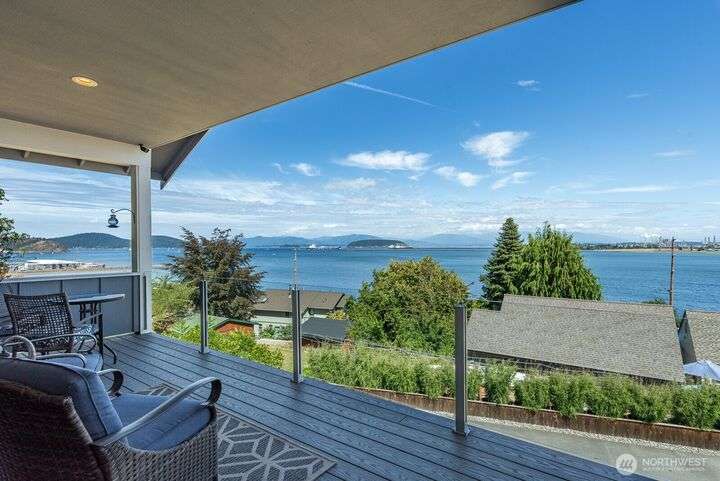Perched to capture sweeping views of Fidalgo Bay, Mt. Baker, the islands, and mountains beyond, this 3BD/2,216 SF home is pure PNW beauty. The vaulted main level is filled with light and offers an open layout to a large view deck. The kitchen shines with stainless appliances, an oversized eat-at island, and incredible storage. The generous primary suite boasts a walk-in closet and spa-like bath with tile shower. Downstairs, discover a dream laundry plus a massive workshop for endless hobbies or projects. Terraced gardens and inviting outdoor spaces make this a retreat for both relaxation and inspiration.