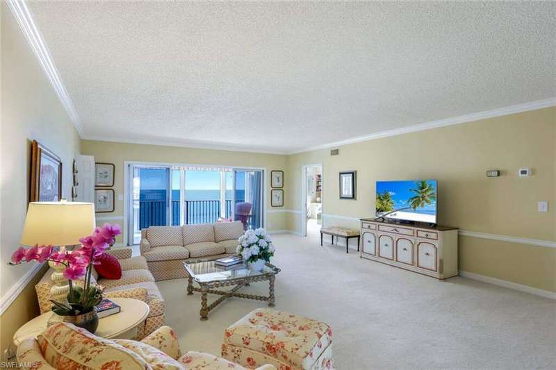 Direct on the beach location with gorgeous views. This very well maintained sunshine filled cottage by the sea offers two master suites and four baths with a western view overlooking the Gulf. The sound of the waves and gorgeous western sunsets cap a perfect home. What could be better? The east-facing kitchen with its own private balcony brings you sunny mornings to start your day. This cheerful home is ready for immediate move in or invites you to create your own spacious living concept. Westgate is meticulously maintained and has recently been rethought to emphasize the coastal tropical lifestyle that Naples and the beach offers. Gorgeous lobbies, a saltwater pool, chic community room, outdoor grilling area, a modern workout room with plenty of windows and two guest suites to accommodate additional friends or family. The beach is footsteps away and a lovely garden sitting area viewing the beach for relaxation adds to the ambiance. Fine dining and upscale shopping is close by. With nearby golfing and watercraft activities there is so much to keep you busy. Come take a look!