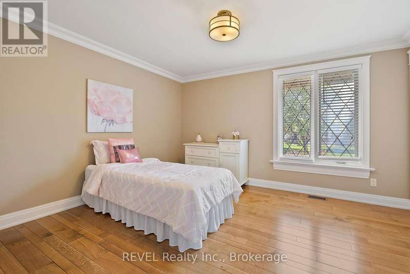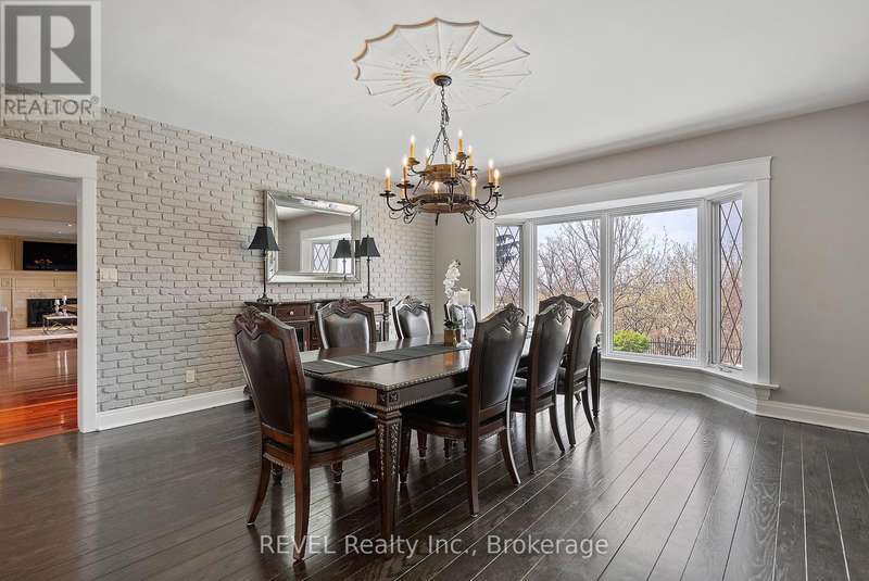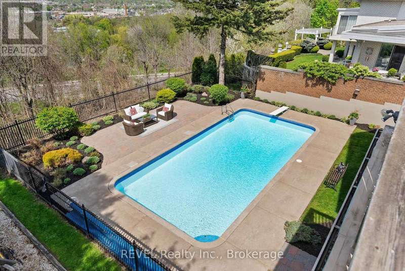 Nestled on the scenic escarpment in the prestigious south end of St. Catharines, this exceptional French Tudor-inspired estate offers over 6,000 sq. ft. of meticulously designed living space with panoramic city light views stretching as far as Lake Ontario on a clear day. Characterized by soaring ceilings, rich wood paneling, and exquisite craftsmanship, the home exudes timeless elegance and sophistication, with every detail curated to reflect the highest standards of luxury. The four-bedroom, four-bathroom layout is perfect for both grand entertaining and private retreat, and the expansive primary suite has been beautifully remodeled to include a spacious walk-in dressing room and a newly renovated 4-piece ensuite. Step outside to your own personal resort, complete with an in-ground pool, multiple covered patios across different levels, and professionally landscaped grounds with mature trees, an in-ground sprinkler system, and a cedar sauna, creating a serene, private oasis. The upgraded gourmet kitchen, hardwood floors throughout, and expansive windows that invite natural light add to the homes comfort and charm, while a full walkout to the backyard enhances the seamless indoor-outdoor flow. Additional features include a two-car garage, potential for secondary living quarters on the lower level, and close proximity to top schools, Brock University, shopping, and major highways. Set in a neighborhood of other prestigious estates, this remarkable home offers an unparalleled opportunity for luxury living in one of St. Catharines' most desirable locations. (id:7434)