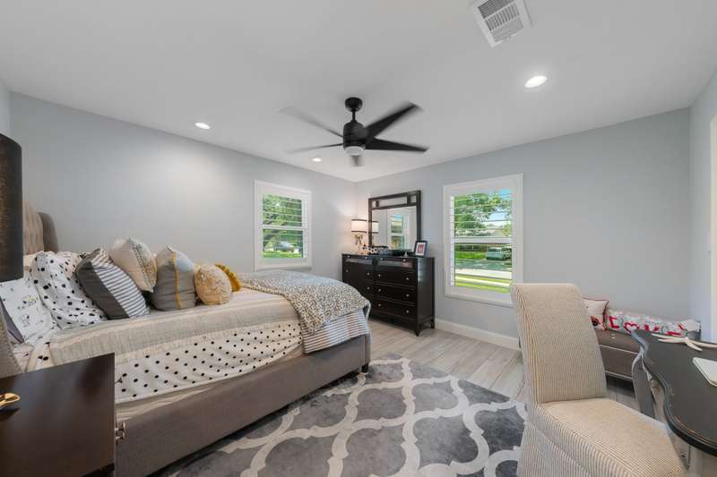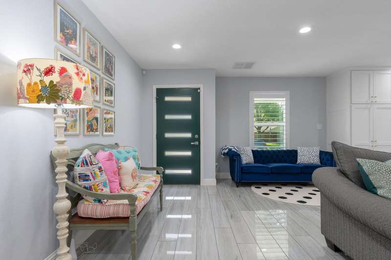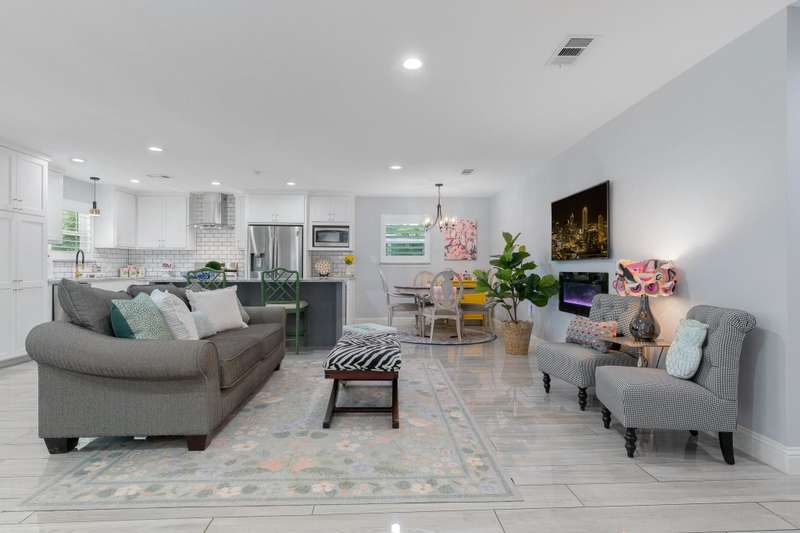 Dont miss this exceptional, fully redesigned transitional home that was taken down to the studs and completely reimagined in 2022. The open-concept layout seamlessly blends style and function, featuring beautiful designer tile flooring throughout and custom plantation shutters on every window, creating a sophisticated yet inviting atmosphere. Every detail has been meticulously crafted, with walls removed and rebuilt to include high-end finishes at every turn. The spacious Living Room flows effortlessly into the Chefs Kitchen and Dining area, offering multiple seating options and a modern electric fireplace for added ambiance. The kitchen is a dream, with a large central island, sleek stainless steel appliances, and a 5-burner gas range, perfect for culinary enthusiasts. This home offers 4 generous bedrooms and 3 full baths along with a gorgeous half bath in the main hallway. The private primary suite is located away from the other bedrooms, offering a tranquil retreat with two walk-in closets, dual sinks, and an oversized shower with both a rain showerhead and handheld sprayer. Bedrooms 2 and 3 share a beautifully updated Jack and Jill bath with a tub and shower combo, while Bedroom 4 boasts its own ensuite with a modern shower and ample linen storage. Every inch of this home has been upgraded, including electrical wiring, PVC plumbing, Roof Replaced , HVAC system, and a tankless water heater all installed in 2022. Additional thoughtful touches include a convenient mud bench area and a spacious laundry room complete with a built-in drip dry and folding station. Step outside to a backyard designed for relaxation and easy maintenance, featuring artificial turf on half of the yard, leaving plenty of room for entertaining or outdoor grilling. This move-in-ready gem, located in the highly sought-after Richardson ISD, combines luxury and practicality for the perfect modern living experience.