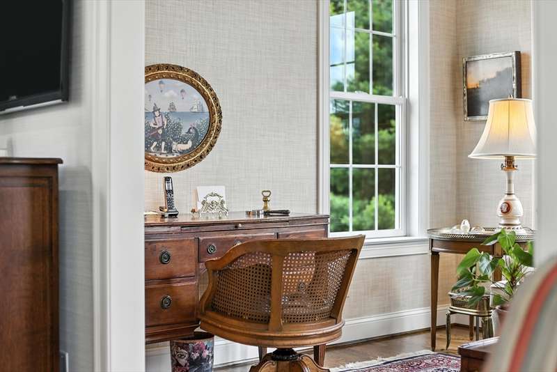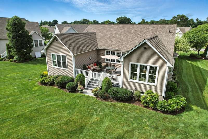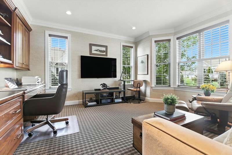 Exceptional 2 bedroom, 2.5 bath condo in a premier cul-de-sac location, privately set with beautiful wooded vistas. Inside, a custom floor plan delights with abundant natural light, a vaulted foyer, dark stained hardwood floors, crown moldings, custom cabinetry, bay windows, and a wonderfully functional floor plan including an office with built-in desk. The dramatic fireplace, specialty window treatments, and designer touches convey understated luxury. This cook s kitchen impresses with striking granite counters, a large island with seating, Bosch stainless appliances, and generous storage. You ll find a powder room, closet, and laundry conveniently located off the two-car garage and a full-house generator ensures peace of mind.The Fields at Chestnut offers premium, stand alone homes with all of the conveniences of condo living. Better than new don t miss this rare offering!