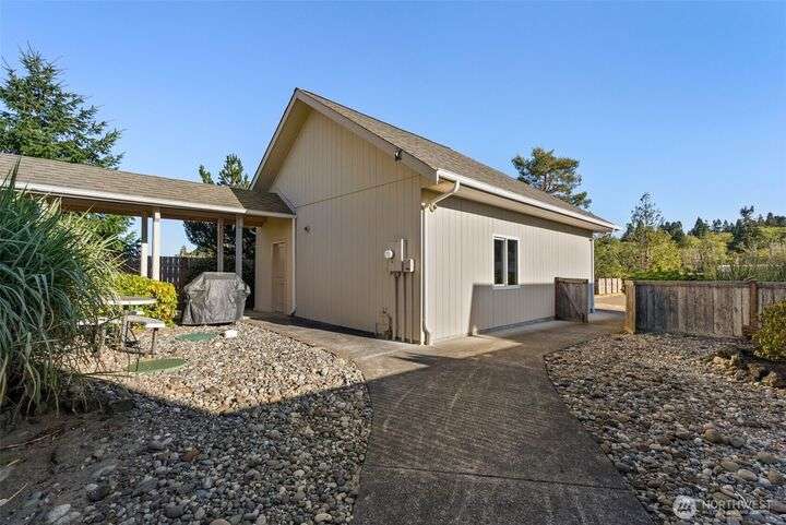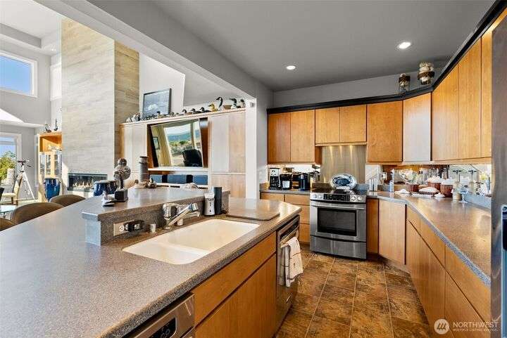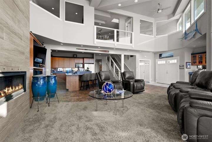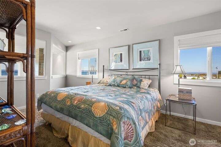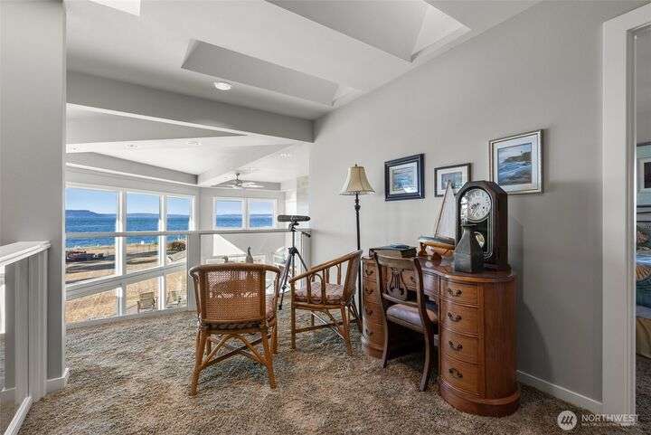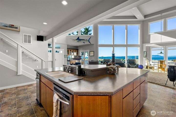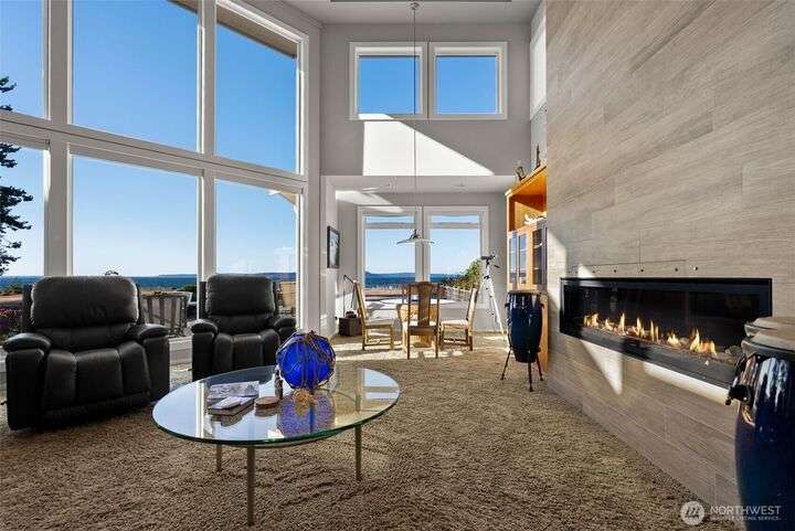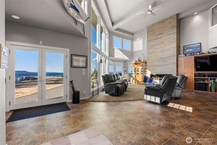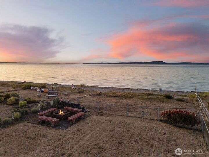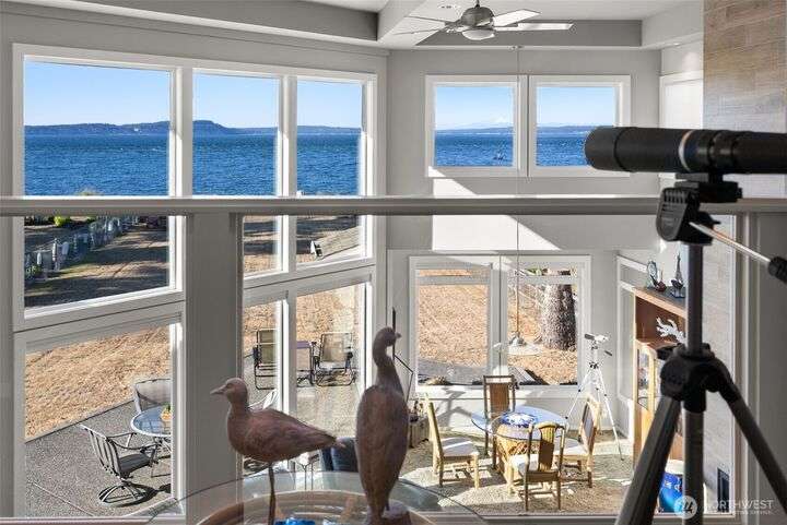 Beachcomber’s paradise just steps from PointNoPoint Lighthouse. This 3134 sqft beachfront home offers front-row Puget Sound living with unforgettable views from nearly every room. Wildlife, passing ships & glowing sunsets frame daily life, while an open-concept floor plan unites the kitchen, dining & great room- featuring cherry cabinetry, vaulted ceilings & stunning floor-to-ceiling tiled fireplace. French doors open to a patio with direct beach access just beyond the fenced yard. The main-floor primary suite features a 5-piece bath, walk-in closet & fireplace. Upstairs, 2 ensuite bedrooms & office provide private retreats. For ease, A breezeway connected 2 car garage. Launch your kayak, fish from shore, walk the beach- enjoy Hansville!