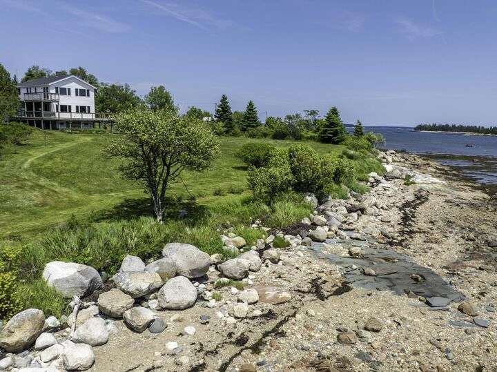 A recently updated turnkey home with deep frontage 330 feet along the shore of Pigeon Hill Bay. Stunning views of open ocean & Bois Bubert Island, along with Petit Manan Lighthouse at the opening of the bay 6 miles away. Lovely views from many rooms, and easy access to the wrap-around deck from both the living room & kitchen. The primary bedroom ensuite has a panoramic view through its southerly-facing wall of windows, and it opens directly onto an elevated deck. Premium features throughout, such as wood & tile floors, a clawfoot tub, a very large upstairs family room & a walkout basement. Many recent renovations to the home & grounds. The home sits near the center of the well-landscaped 2.2 acres. The newly created circle drive allows for convenient access to the home and garage, while the gently sloping ocean-side yard makes for easy entrance onto the granite shore. Perfect for those seeking a shorefront home that is rural without being overly remote. Bordering the Preserve is a bonus, and it brings many spectacular birds, including eagles, herons, and ospreys. Enjoy this home & shoreline year-round!