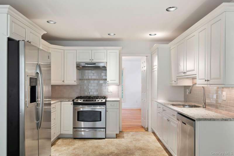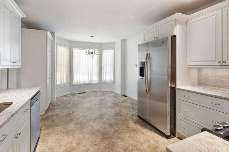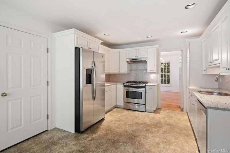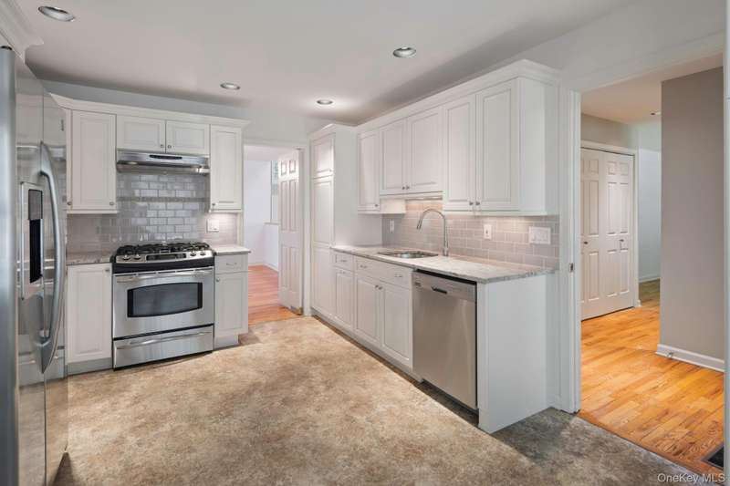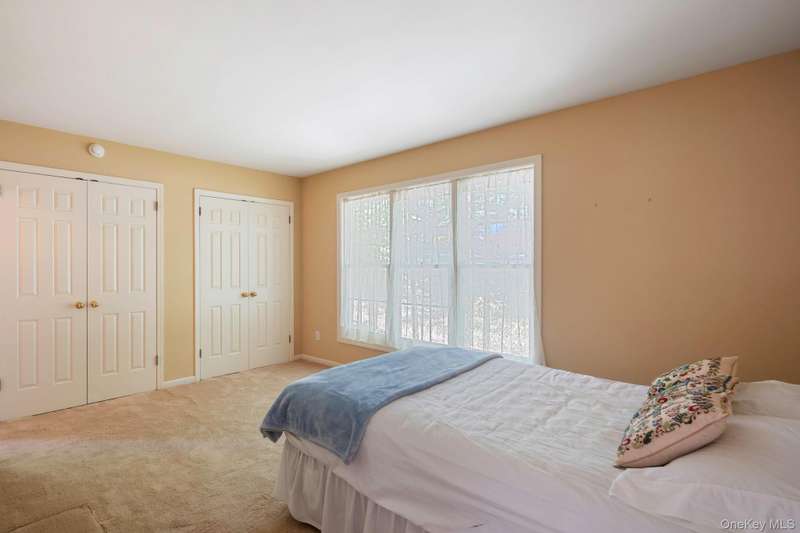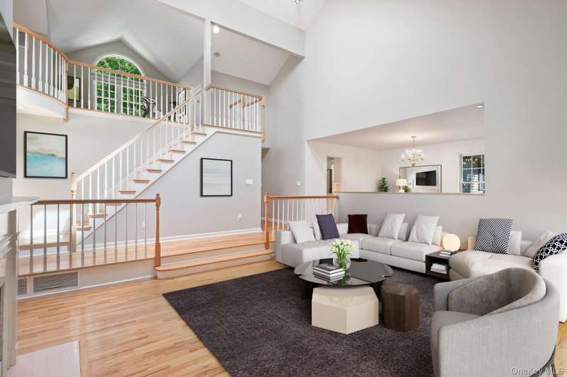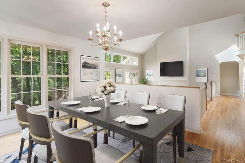 Enjoy the highly desirable Riverwoods lifestyle, Chappaqua's premiere upscale condo/townhouse community close to Mt Kisco Village with Chappaqua schools & commute. Easy living in this bright sunny, 3 level end unit with main floor primary bedroom and an elevator. "Lives" like a 4 bedroom with 2 home offices and additional flexible spaces. Versatile floorplan. Renovated kitchen, updated baths, cathedral ceilings and many windows throughout. Move-in as is or update. 3 finished levels with elevator access to all. Gracious cathedral ceilinged living room , large deck, cathedral ceilinged primary suite with renovated spa style bath, dressing area and walk-in closet. 2nd bedroom with en-suite bath on main floor, den, formal dining room, den, laundry and powder room. Newly renovated eat-in kitchen with stainless steel appliances & windowed alcove leads to garage. The 2nd floor offers a loft/study, separate office with powder room. The expansive finished lower level family room has a summer ki