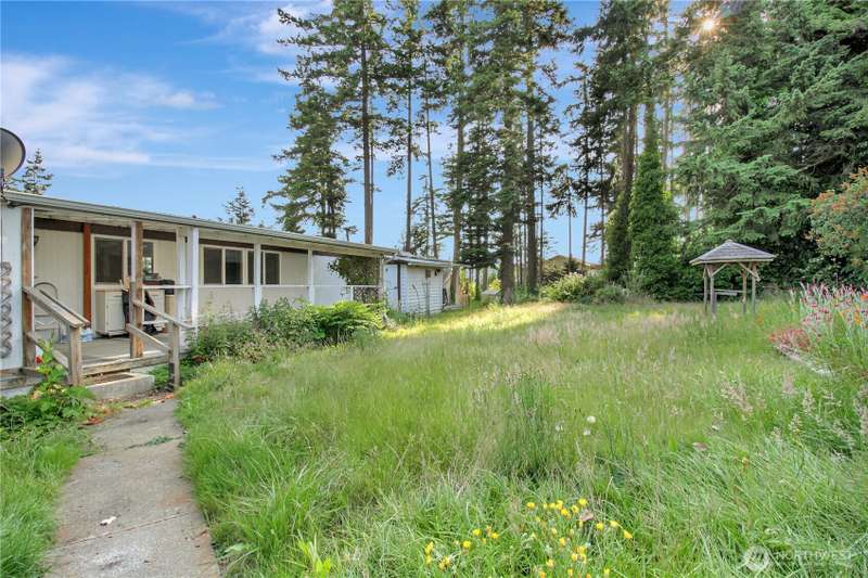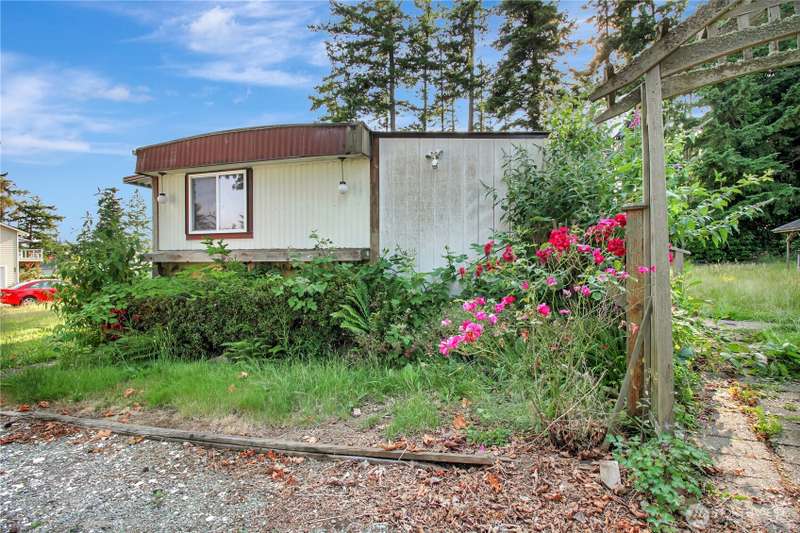 Investor alert! Beautiful lot with peekaboo views of Saratoga Passage. Single wide sits on big lot with fruit trees, mature landscaping, outbuilding. Fully intact water system and fully intact septic recently updated, inspected, and pumped. With some repairs, rent this out or live in it until you are ready to build a dream home with a view. Quiet neighborhood, friendly neighbors. Experience the peace and hospitality of Camano Island. West side of Camano, near State Parks with hiking trails, beaches, and boat ramps. Fishing, crabbing, fresh air, and peace. Home definitely needs updating, or replacement. Building permit will require septic updating, but until then, water and sewer are fully functional for you or your renters.