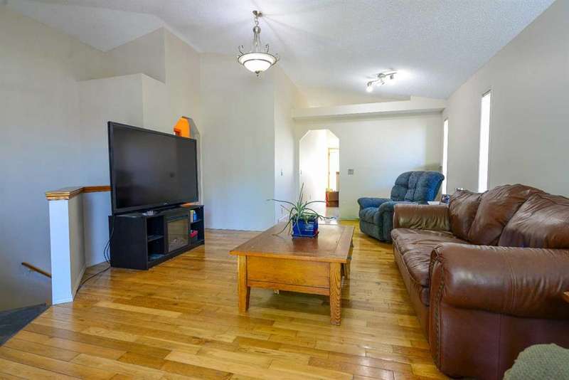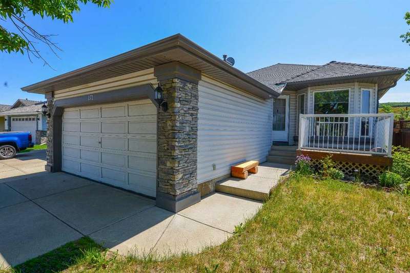 Fantastic FULLY FINISHED 5 Bedroom BUNGALOW, total of over 2400 sq.ft. developed with 3 full baths! AWESOME LOCATION Siding to Community Park & GARDEN, Sports courts with pickle ball / basketball, SOCCER FIELD, OUT DOOR RINK, ALL right out your door! Also, incredible GOLF COURSE & beautiful BIKE & WALKING PATHS ALONG THE RIVER VALLEY! HARDWOOD FLOORS through-out main, CENTRAL AIR CONDITIONING! Vaulted ceilings & open plan with large great room off dining room area. Eat in kitchen with Breakfast bar & bay window out to South DECK & back yard all fenced & landscaped. 3 BEDROOMS UP with main floor laundry, Good sized Master with vaulted ceiling, full ensuite with jetted Tub & separate Shower. 2 more Bedrooms & Full bath up. Developed down with 2 bedrooms, Large Rec. Room & upgraded full 5 pce. bath with double sinks. Basement bedrms may not meet current egress standards. Large storage room and Double ATTACHED GARAGE MAKE this a great Family home READY for a great Family!