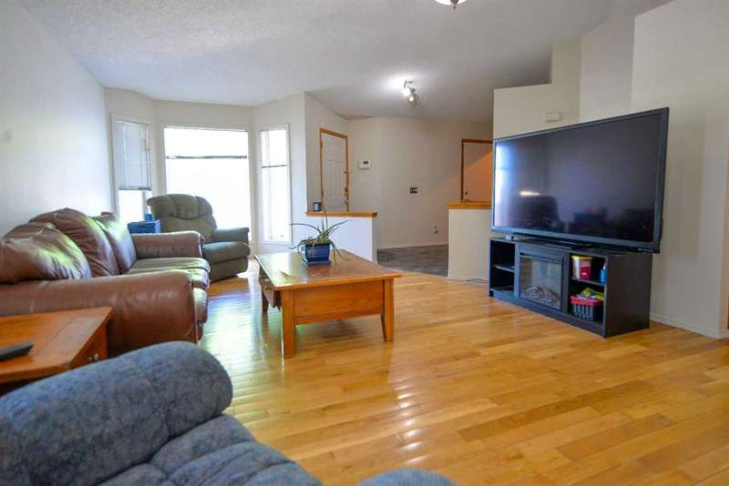 Fantastic FULLY FINISHED 5 Bedroom BUNGALOW, total of over 2400 sq.ft. developed with 3 full baths! AWESOME LOCATION Siding to Community Park & GARDEN, Sports courts with pickle ball / basketball, SOCCER FIELD, OUT DOOR RINK, ALL right out your door! Also, incredible GOLF COURSE & beautiful BIKE & WALKING PATHS ALONG THE RIVER VALLEY! HARDWOOD FLOORS through-out main, CENTRAL AIR CONDITIONING! Vaulted ceilings & open plan with large great room off dining room area. Eat in kitchen with Breakfast bar & bay window out to South DECK & back yard all fenced & landscaped. 3 BEDROOMS UP with main floor laundry, Good sized Master with vaulted ceiling, full ensuite with jetted Tub & separate Shower. 2 more Bedrooms & Full bath up. Developed down with 2 bedrooms, Large Rec. Room & upgraded full 5 pce. bath with double sinks. Basement bedrms may not meet current egress standards. Large storage room and Double ATTACHED GARAGE MAKE this a great Family home READY for a great Family!