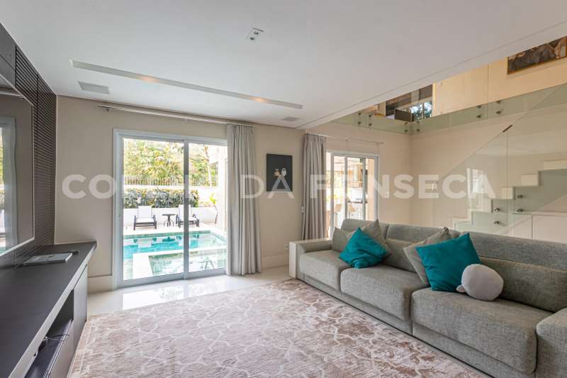 Casa no condomínio BURLE MARX, com 410m² área construída, 4 dormitório(s), 4 suíte(s), 4 vaga(s), 4 banheiro(s), piscina, escritório, mobiliado (a), ar condicionado, dep. de empregados, varanda, pé direito duplo.