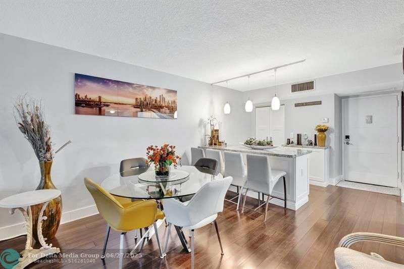 This impeccably maintained condo offers peace of mind and timeless appeal. Gleaming bamboo floors flow throughout the space, creating a warm, natural vibe. Expansive balcony invites you to unwind with morning coffee or evening cocktails while soaking in the breeze. Sunlight pours in through impact windows adorned with elegant Plantation Shutters. A modern open kitchen with bar seating seamlessly connected to living area for entertaining ease. Bedrooms provide generous space and natural light. Amenities include heated pool, sun-deck lounging areas with water views, fully equipped gym, sauna, 24 hour security, boat dockage when available. Whether youre entertaining or escaping, this condo offers the perfect blend of laid-back luxury and everyday convenience. Short distance to the beach.