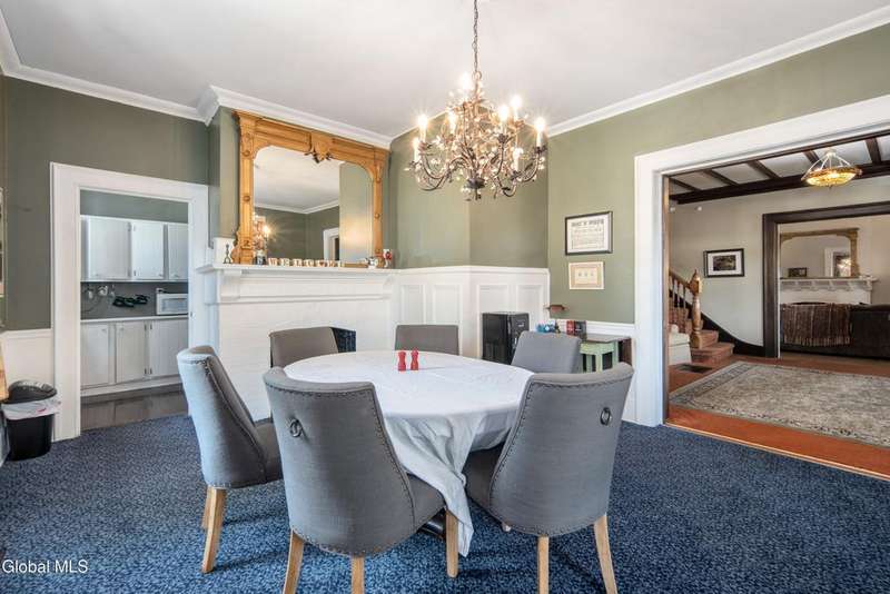 Step into Saratoga's history with this extraordinary Queen Anne-style home and carriage house, dating back to the 1800s. Once a thriving Bed & Breakfast, this property has evolved into a sought-after short-term rental, offering strong income potential. The carriage house, originally the owner's residence, complements the main home with flexible living options for guests, family, or investment purposes. A private in-ground pool, nestled between the two residences, creates the perfect retreat for relaxation or entertaining. Spanning .65 acres and bordered by three streets, the property offers privacy while being just minutes from Broadway, SPAC, the State Park, dog park, world-famous race track, Saratoga Casino, shopping, and dining. Whether envisioned as a family compound, investment property, or continuation of its hospitality legacy, this is a rare chance to own a piece of Saratoga's charm in a highly desirable location.To give an overview, the main dwelling has a total of 8 bedrooms, 7 full baths, 1 half bath. These totals include an attached 1 bedroom apartment (currently rented). This apartment is not shown on the floor layout drawings. The carriage house is comprised of 2 bedrooms, full bathroom, dining room, living room and kitchen..
