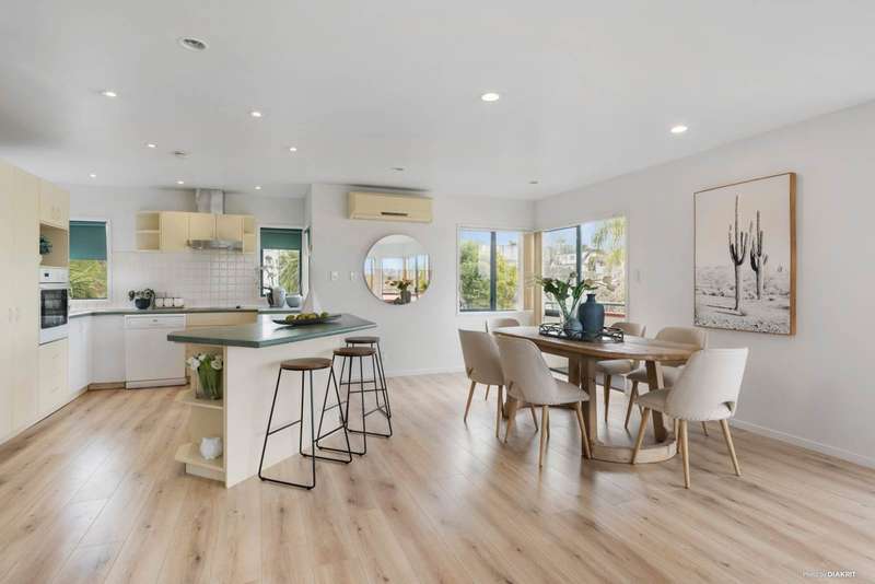 This property offers 5 bedrooms, 3 bathrooms, an office, 2 living areas and two kitchens. One of the living areas, the kitchen, and two bedrooms are located in a separate wing of the house with its own entrance. This area is fully self-contained with a kitchen and bathroom. Depending on your needs, you can configure this house as a 3-bedroom main house plus a 2 bedroom income. The master bedroom is on the first floor, with an Ensuite and a walk-in wardrobe. There is also the main living area with an open plan kitchen and seamless flow to the balcony. A beautiful sea view can be seen on the upper level. Outside is equally amazing, on this 638 m2 section, you will find a garden and plenty of decking areas to relax. Location-wise, this property is within just minutes walk from the ferries to the City, close to motorways, shopping malls, cafes, and restaurants, and zoned for top schools, including Hobsonville Point High School. Call us to view today!