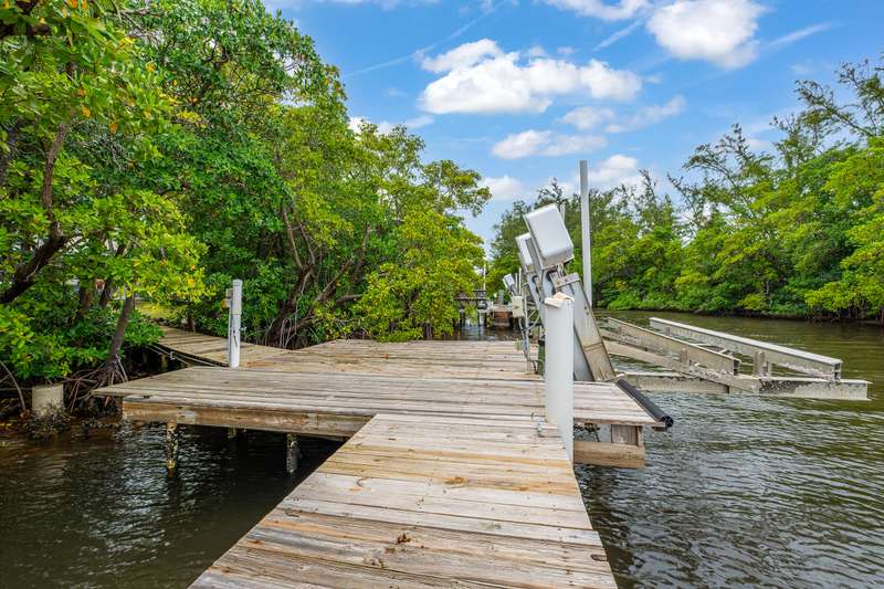Key West style compound on Hypoluxo Island between PB and Manalapan. Tropical plantings lead to a sunny great room overlooking a privateoasis of palms and an inviting pool, spa and firepit. Beyond, along 70' of waterfront, a private dock with lift beckons. On offer is an open concept kitchenwith gas cooktop, 400 bottle wine closet, screened porch, spacious master suite with deck, 3 or 4 additional bedrooms and 4 full baths. The separate guestcottage accommodates 4. Garage parking for 4+ with extra space for hobbies and storage. Beach access by foot, bike or car.