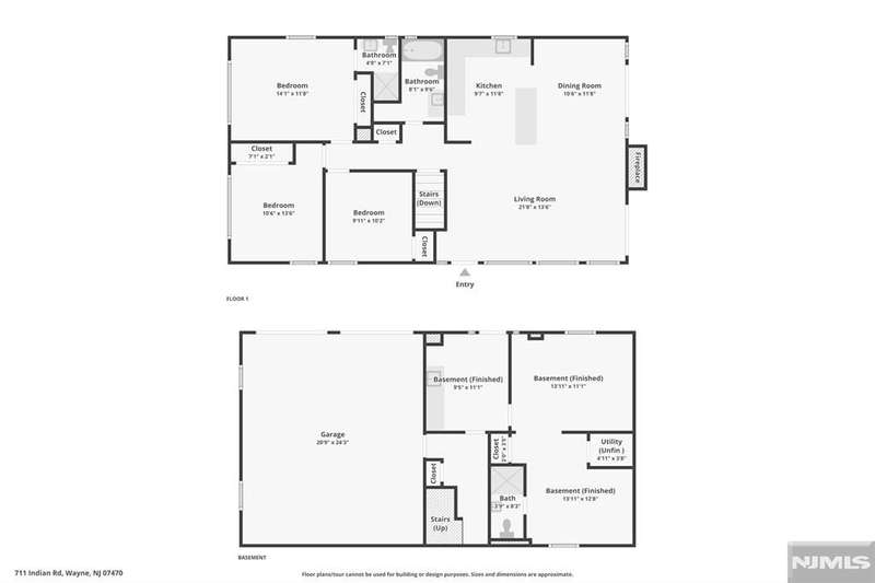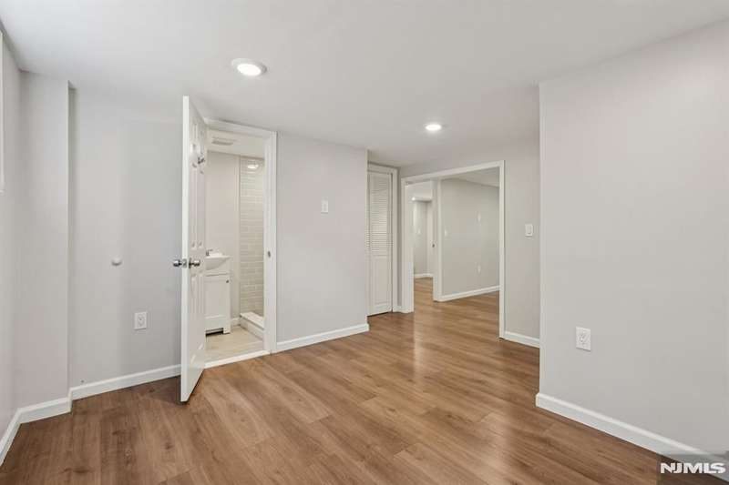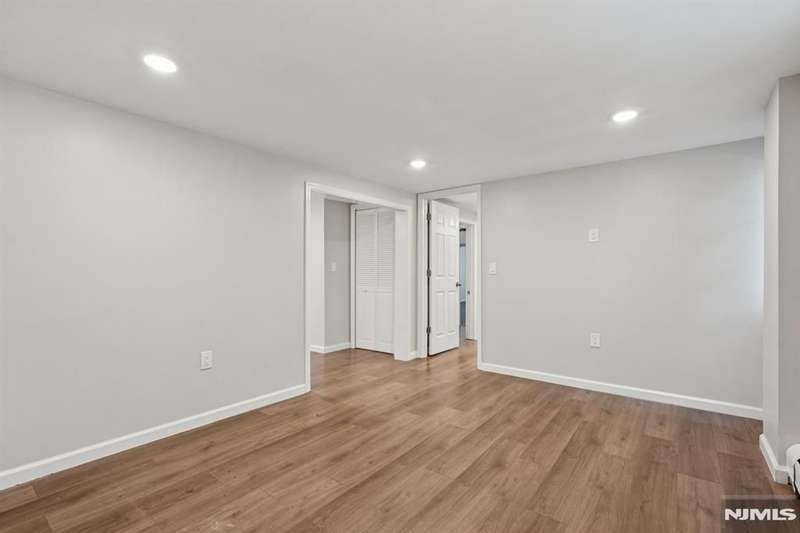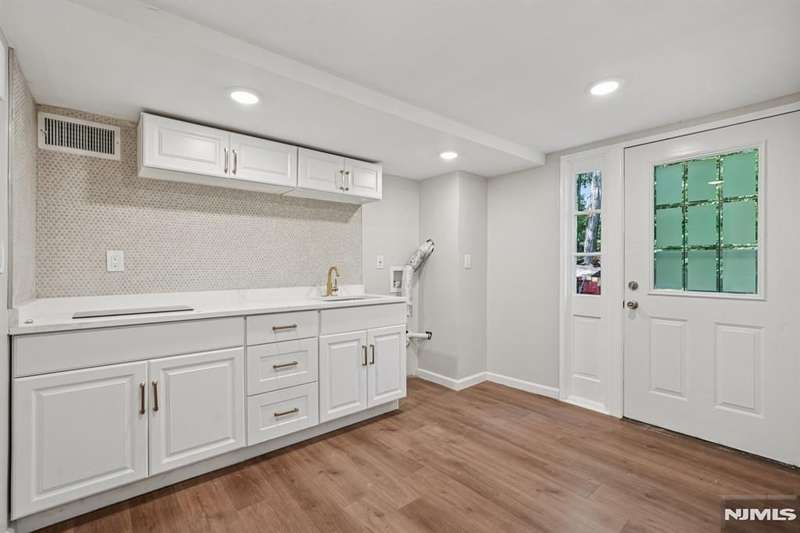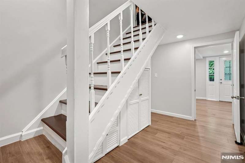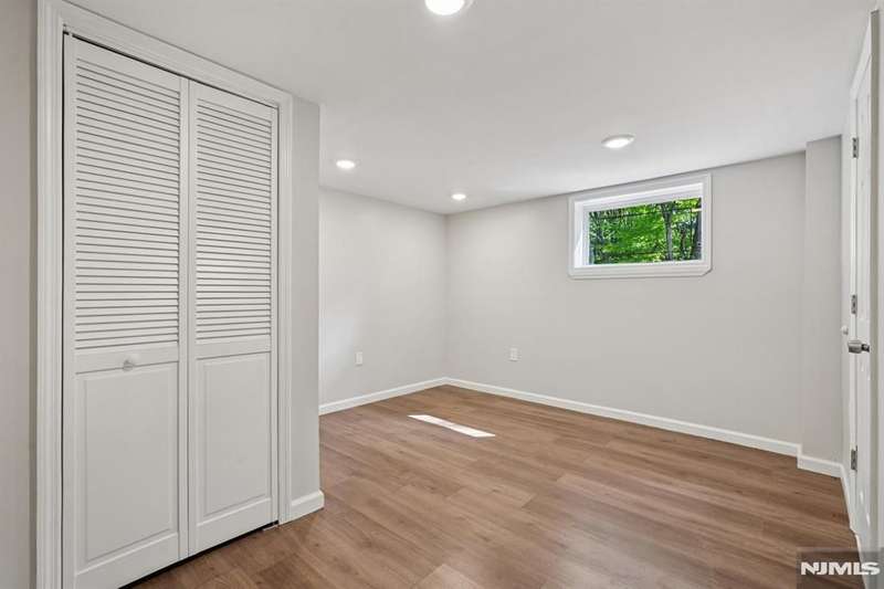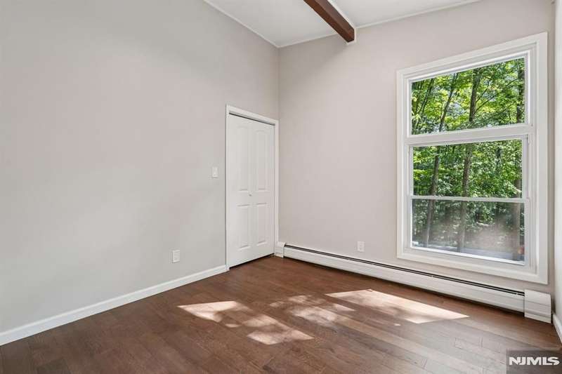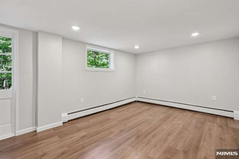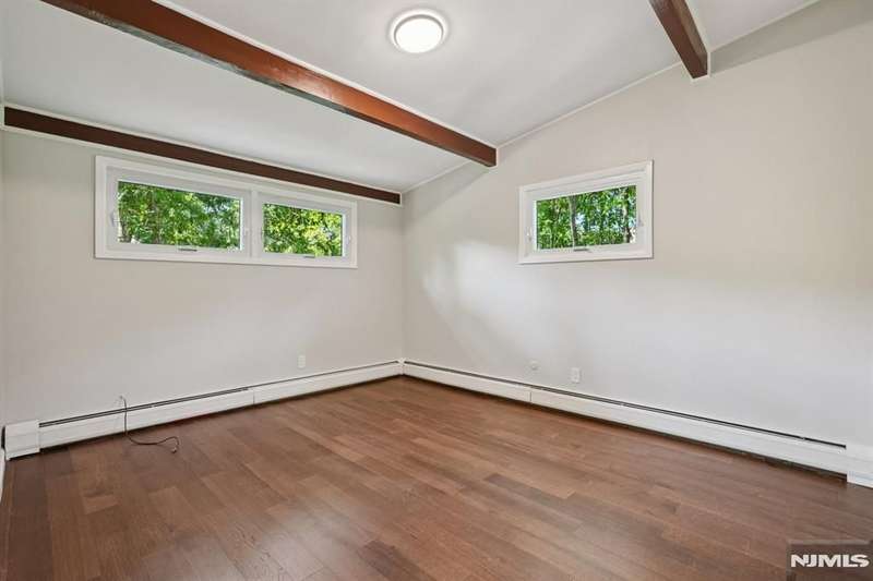 Welcome home to this beautifully renovated 4 bedroom, 3 bathroom Raised Ranch, perfectly nestled on a private wooded lot in the heart of Wayne. Step into the inviting entry foyer that opens to a bright, open-concept main living area. The living room boasts large windows, exposed wood beams, and a charming wood-burning fireplace, creating a warm and welcoming space for conversation and relaxation. Seamlessly flowing into the dining room, you'll find an elegant setting for intimate meals or lively gatherings, with sliding glass doors leading to a spacious rear deck ideal for outdoor entertaining, al fresco dining, and taking in stunning wooded views. The chef's kitchen is a showstopper, featuring custom cabinetry, marble countertops, wood beams, center island and a skylight that bathes the space in natural light. The first floor also offers a serene primary suite with ample closet space and a private bath, plus and 2 additional bedrooms and full bath. Downstairs, enjoy a versatile living area with a den, fourth bedroom, kitchenette, full bath, garage entrance, and walkout to the backyard. Gorgeous hardwood floors and rustic beams run throughout. The expansive yard provides endless opportunities for outdoor activities in a peaceful, natural setting. With a 2-car garage, ample parking, and a location close to NYC transportation, shopping, and dining, this home offers the perfect blend of modern comfort and tranquil retreat living.