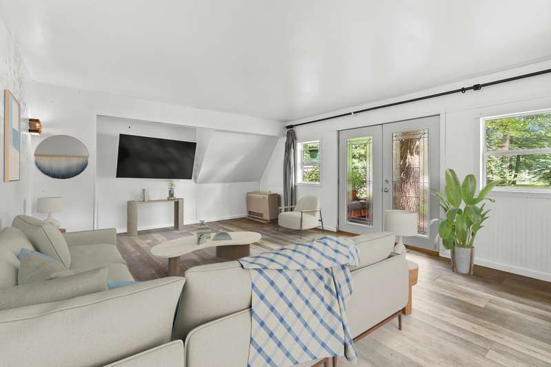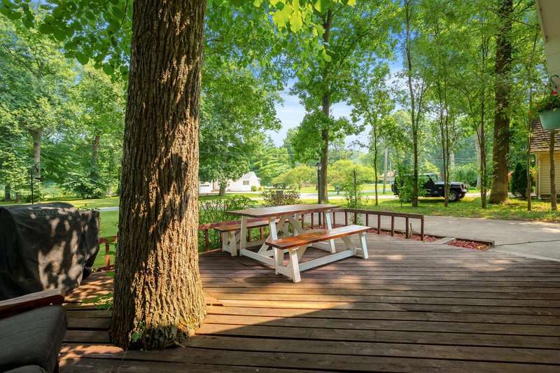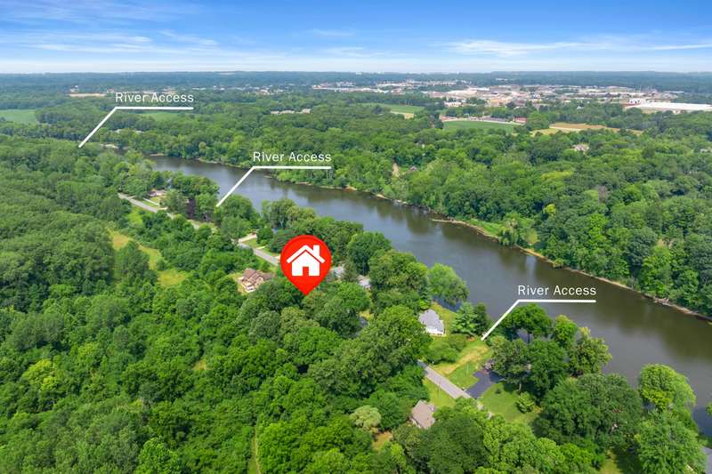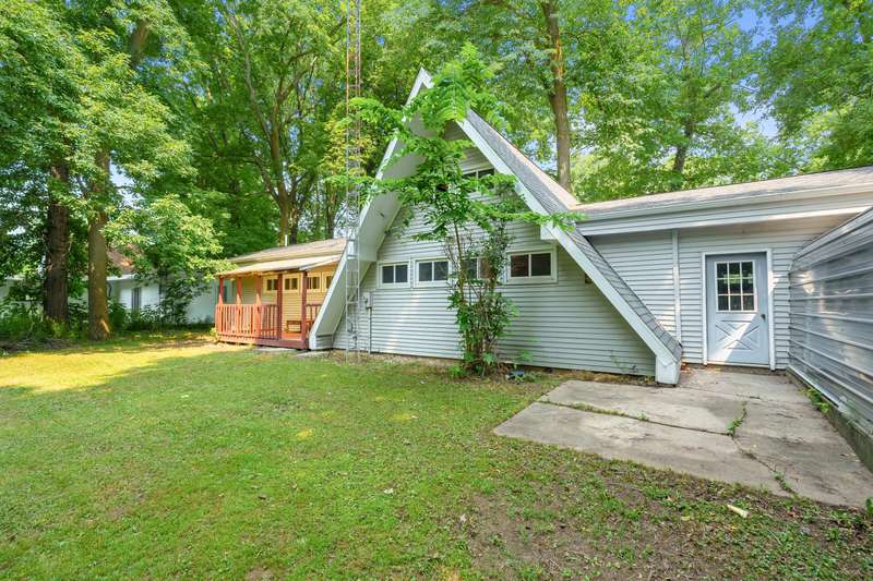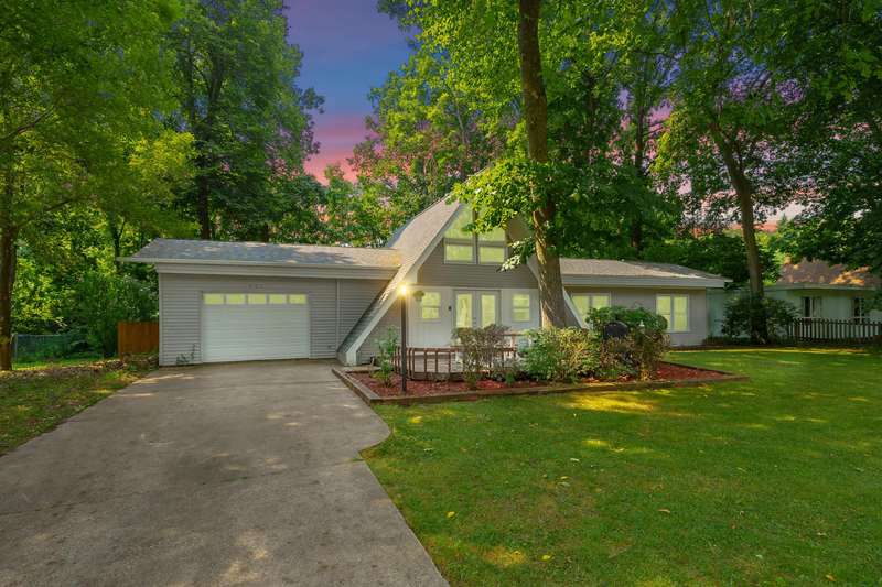 Charming, extended A-frame retreat on a private, wooded lot with multiple easement access points & public access to the St. Joseph River-perfect for recreation or relaxing by the water. Located in the desirable St. Joseph School district, this home is ideal as a year-round residence or getaway. The main floor features an open-concept living area with large double entry doors, vinyl plank flooring, and a spacious family room-great for entertaining. The efficient kitchen, convenient laundry room, and full bath offer functionality, while two generously sized bedrooms include a primary suite with an en suite half bath and direct access to the garage and large storage area. Upstairs, a huge loft provides flexible space for additional sleeping areas, office, or recreation. Enjoy river views from the expansive front deck, relax on the large covered back deck, or unwind in the open backyard surrounded by mature trees and privacy. Fenced area perfect for pets or gardening. Rare opportunity for river access, updated primary bedroom and bath, ample storage, and plenty of parking. Experience the best of St. Joseph River living at 1900 Derfla Drive!