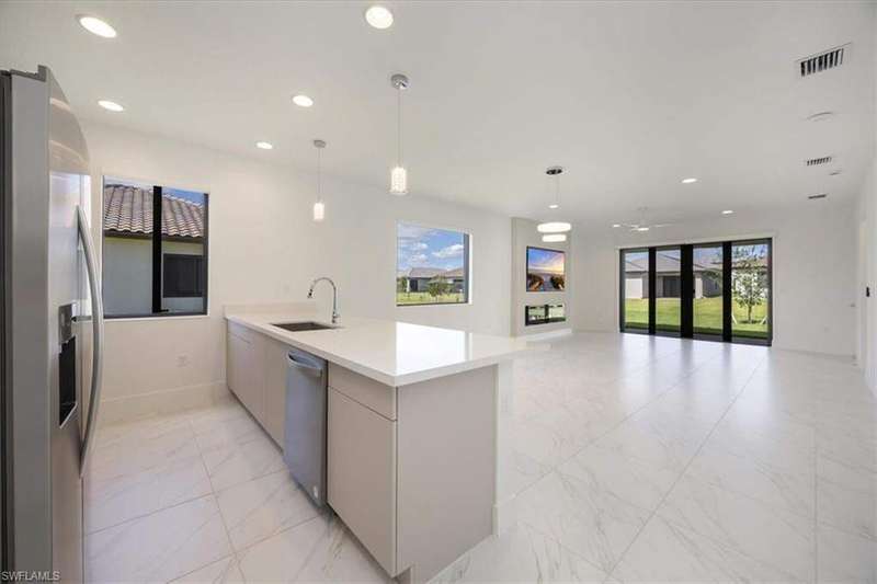 Be the first to live in this new construction Cedar model. Completed in February 2025, this spacious home features 3 bedrooms + a den, 3 full bathrooms, just over 1900 sf under air and loaded with upgrades. Top of the line large modern tiles throughout, custom light fixtures & ceiling fans, quartz counter tops, stainless steel appliances, push open cabinets, soft close in Jack & Jill bathroom, featured wall with electric fireplace, upgraded washer & dryer with laundry tub, impact windows & doors, custom window coverings, large yard, and more. The community offers multiple parks including dog parks, shopping, restaurants, bars, run/bike trails, grocery store, gas station, car wash, and an amazing amenities center, The Club at Maple Ridge with resort-style pool, pickleball court, grilling area, fitness room, full exhibition kitchen, sauna, and so much more.