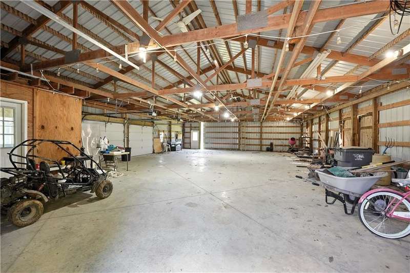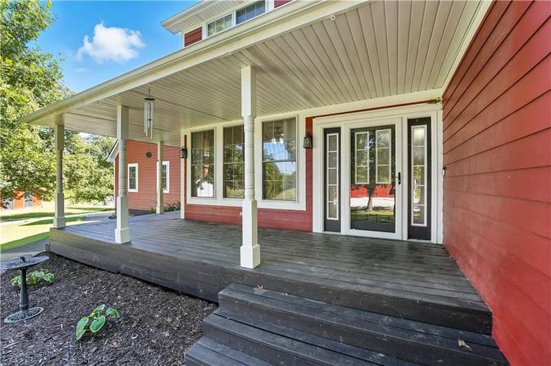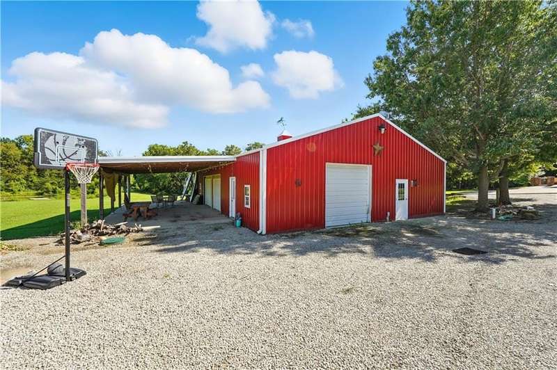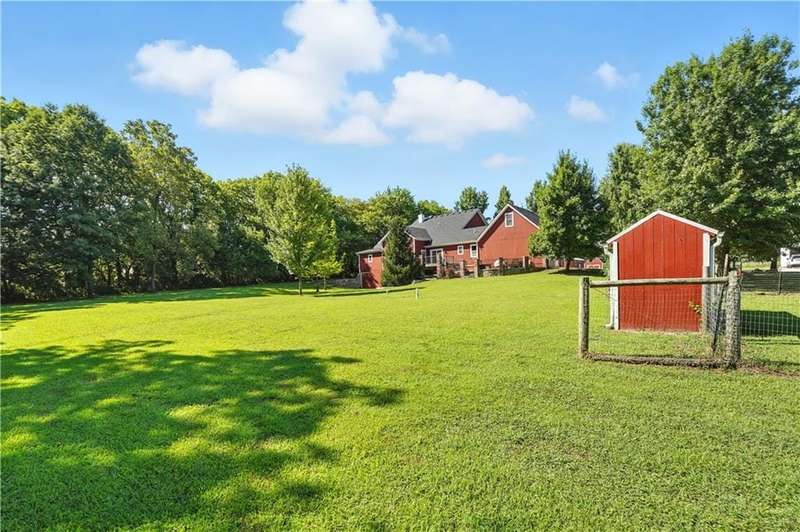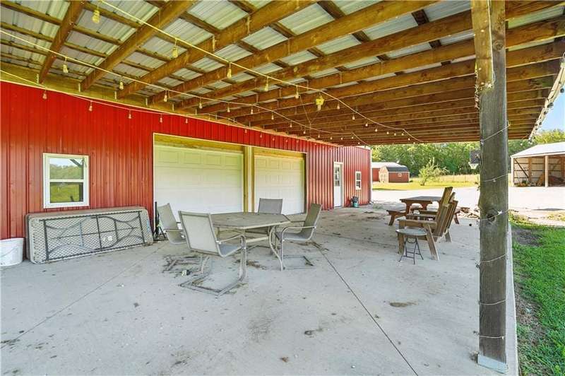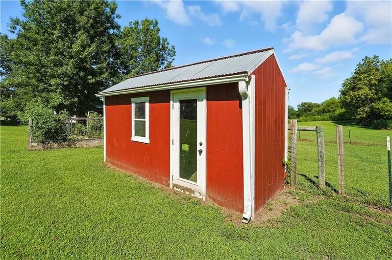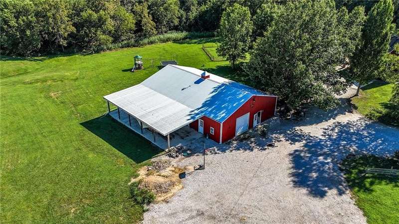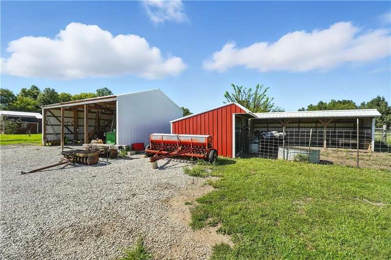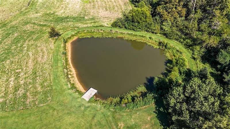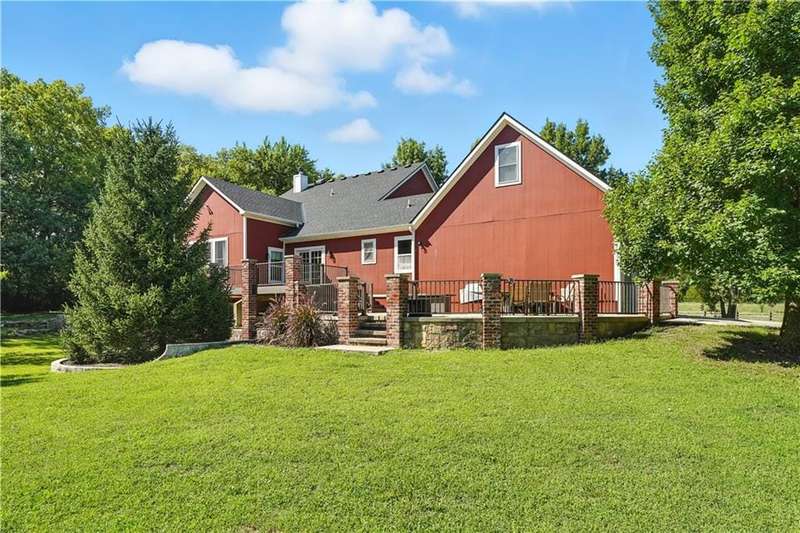 Country living at its finest! Welcome to this stunning 4 bedroom (plus two additional non-conforming), 3.1 bath, 1.5 Story farmhouse on 18 beautiful acres in Harrisonville, MO! Perfectly positioned on blacktop and just minutes from town, this 2007 built home blends modern convenience with timeless country charm. Inside, youll find an updated kitchen with two walk-in pantries, stainless steel appliances, and eating area with a wet bar. The main level features a laundry room, formal dining/living room, and a beautiful family room with vaulted ceilings and fireplace. The primary suite offers his-and-hers walk-in closets, whirlpool tub, and double vanity in the bathroom. Multiple hobby rooms, generous storage spaces, and a dedicated media room provide endless possibilities. The walk-out basement features a non-conformiing bedroom, full bathroom, and second kitchen, ideal for entertaining or multi-generational living. Recent updates include a 2 year-old roof with upgraded shingles and a serviced HVAC system for peace of mind. Outdoors, the property is equally impressive! Relax on the covered front porch or the spacious back deck and large patio, both perfect for taking in the fresh country air. A dock extends into the stocked pond, ready for fishing or quiet evenings by the water. The land offers a perfect mix of 10 acres of fenced pasture and 8 acres of wooded conservation, with abundant wildlife for hunting, plus space for gardening or livestock. The property also includes 6 versatile outbuildings (electric to 4), including: 140x60 building with concrete floors, electric, bathroom and 10x60 overhang. 130x40 building with concrete and electric. 30x24 lean-to with electric. Garden shed. 12x6 shed with electric. 2 livestock lean-tos. Whether you dream of raising animals, working on projects, or simply enjoying the peace and privacy of nature, this one of a kind homestead truly checks all the boxes!
