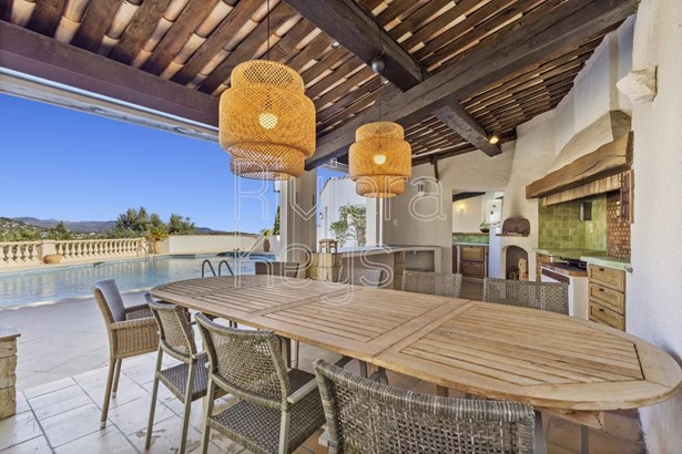 Within walking distance of the charming medieval village of Tourrettes-sur-Loup, this rare and exceptional property offers breathtaking, open views all the way to the Mediterranean Sea.Set on a private 4,200 m² plot with wooded surroundings, the estate features 227 m² of living space, divided between a main villa and a guest house – ideal for hosting family and friends in complete comfort.The main villa includes 3 en-suite bedrooms offering privacy and style, a bright living room with cathedral ceiling, a second living room with fireplace, dining room and an independent kitchen – all opening onto large terraces with direct access to the inviting pool and panoramic sea views.The guest house, with 57 m² of independent space, provides an ideal retreat for longer stays.For outdoor living, a fully equipped summer kitchen and dining area make it perfect for entertaining in total privacy.Located in a village known for its authentic atmosphere, weekly market and famous Violet Festival, this property is just 30 minutes from Nice International Airport – offering the perfect balance between tranquility and accessibility.