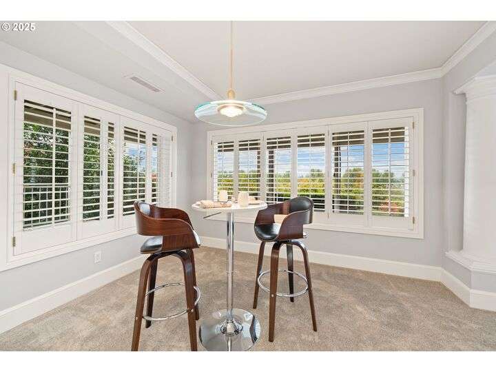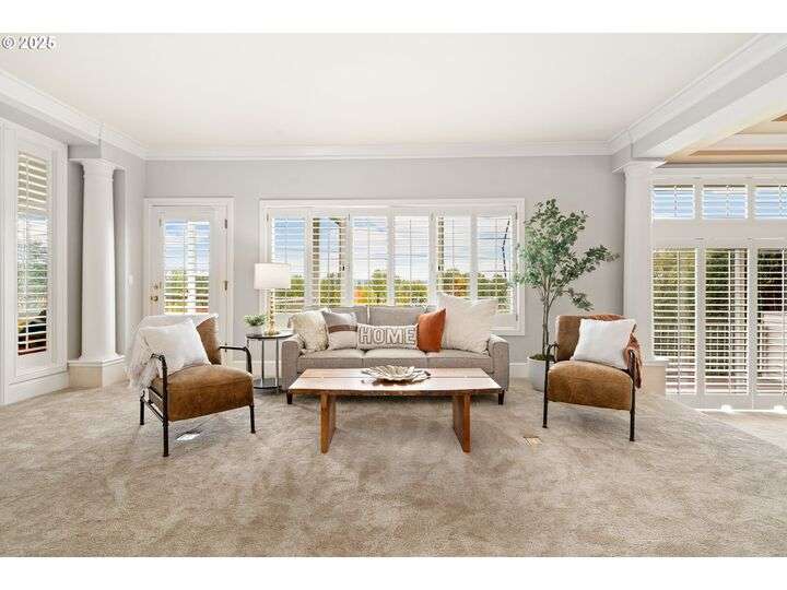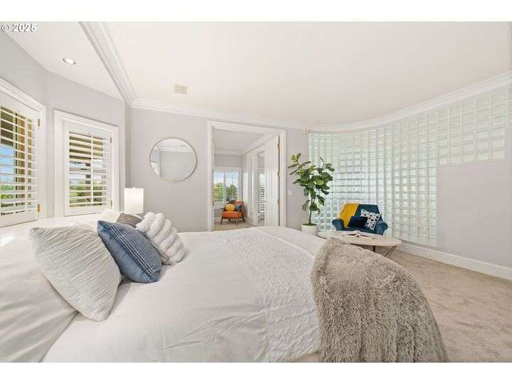 Jaw-dropping Vancouver Lake views from nearly every window! This expansive almost 4,000 sq ft condo in the private, gated Lake Crest Estates offers rare flexibility — perfect for multi-generational living or entertaining. The main level features a full kitchen and formal dining room with custom lighted built-in hutches, while the lower level offers a second kitchen/wet bar with built-in refrigerator, sink, dishwasher, and large dining area.Set within an exclusive community of only 4 units, this home provides exceptional privacy and quiet. Elegant plantation shutters throughout, Sliders on both levels leading to the covered deck and patio, and two fireplaces add charm and sophistication. Recent upgrades include new carpet, fresh paint, 3 year new double H20 heaters and a NEW HVAC system. Located in the sought-after Columbia River High School district, this residence blends space, elegance, and unmatched lake views.