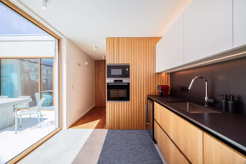 Four+one bedroom duplex villa in an exclusive residential development with lots of privacy, good sun exposure and green spaces in Aveiro. Excellent villa, with 327m2 of gross floor area, on a 507m2 plot, which stands out for its contemporary lines, natural materials and neutral tones, creating an intimate, family atmosphere. The 4+1 bedroom, 2-storey villa is part of an exclusive condominium with only fifteen new, urban and very functional houses. The villa has good areas, lots of privacy and green spaces, as well as good sun exposure. The large, bright living room extends onto a west-facing patio. Next to it is the modern, fully-equipped kitchen , with an adjacent laundry room . The bedrooms offer good areas with built-in closets, two of which are en suite. On the first floor there is also a garage for two cars and storage. In Aveiro, in the parish of Esgueira, with excellent access to the A25 highway. Close to shops, services and schools. A short distance from the beaches of Barra and Costa Nova. CHARACTERISTICS: Plot Area: 508 m2 | 5 465 sq ft Area: 322 m2 | 3 463 sq ft Deployment Area: 179 m2 | 1 924 sq ft Building Area: 322 m2 | 3 463 sq ft Bedrooms: 4 Bathrooms: 3 Garage: 2 Energy efficiency: A+