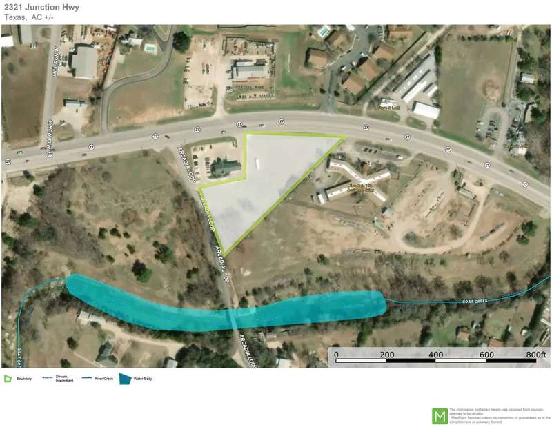 Incredible commercial investment opportunity in Kerrville- your options are endless on this vacant lot ready to be built on. 2.34 acres with 2 entrance/exits 395 +/- feet of frontage on Junction Hwy 250 +/- feet of frontage on Arcadia Loop Busy location directly across the highway from from Bobcat dealer and next door to Kerr County Federal Credit Union. Graded flat lot ready for building your new business.