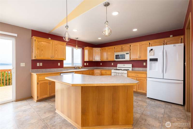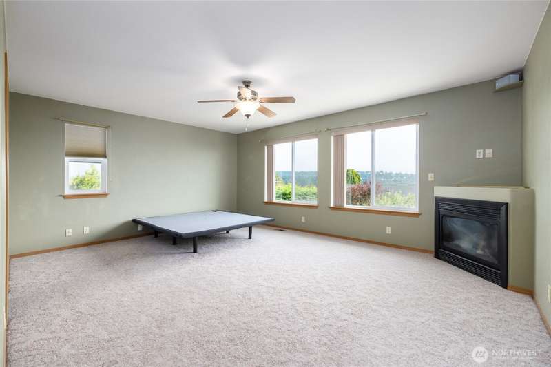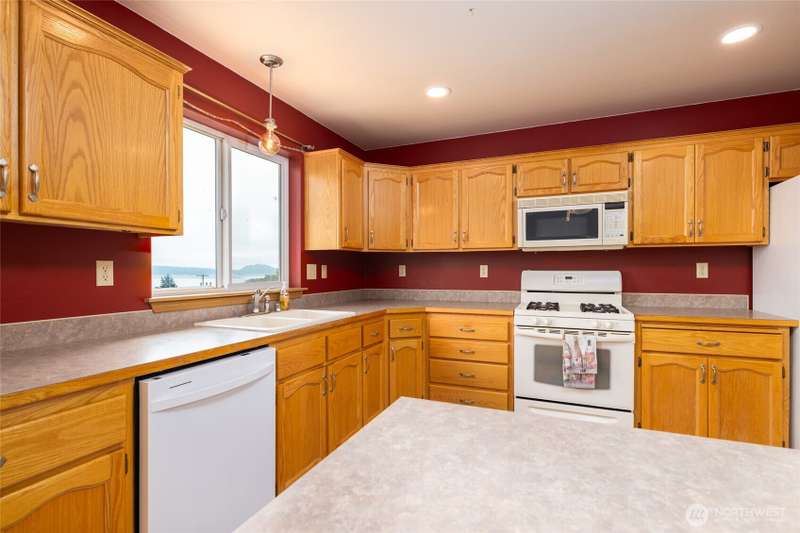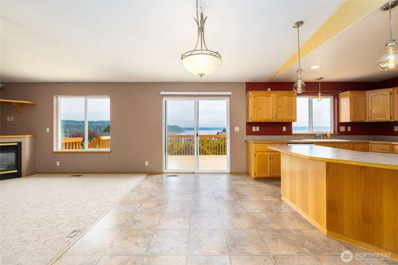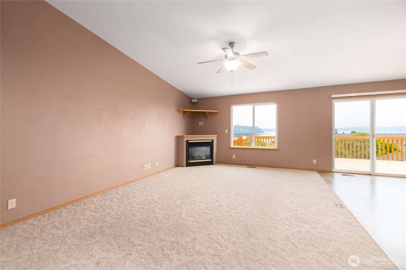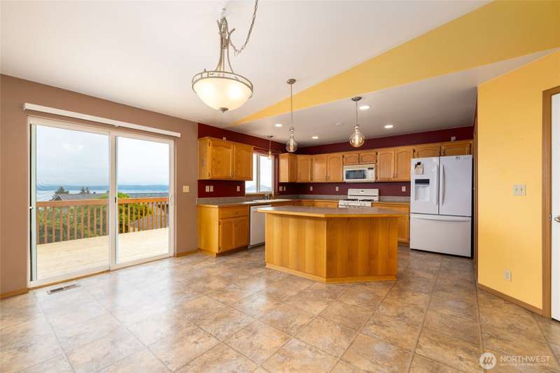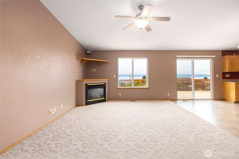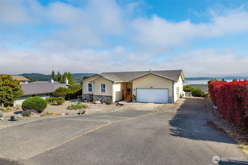 Come take in the expansive ocean and mountain views in this 3 bedroom home sitting atop the quaint Dugualla Bay community just north of Oak Harbor. With a bright and spacious living room and kitchen area, there is lots of room to entertain or enjoy the peacefulness this home offers. Open kitchen includes tons of counter space and walk-in pantry. Brand new carpet, vaulted ceilings and access to rebuilt deck finishes off the dining and living room. Primary suite complete with dual sinks and private gas fireplace. Outside find a roomy deck, sizeable shed, and plenty of driveway and RV parking. Community comes with private clubhouse, boat ramp, and beach access just down from the home. Don't miss out on this beauty and the views it offers.