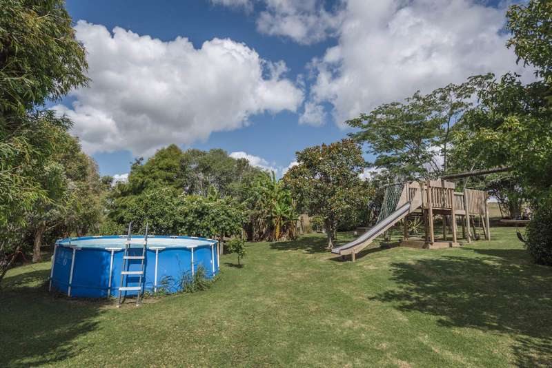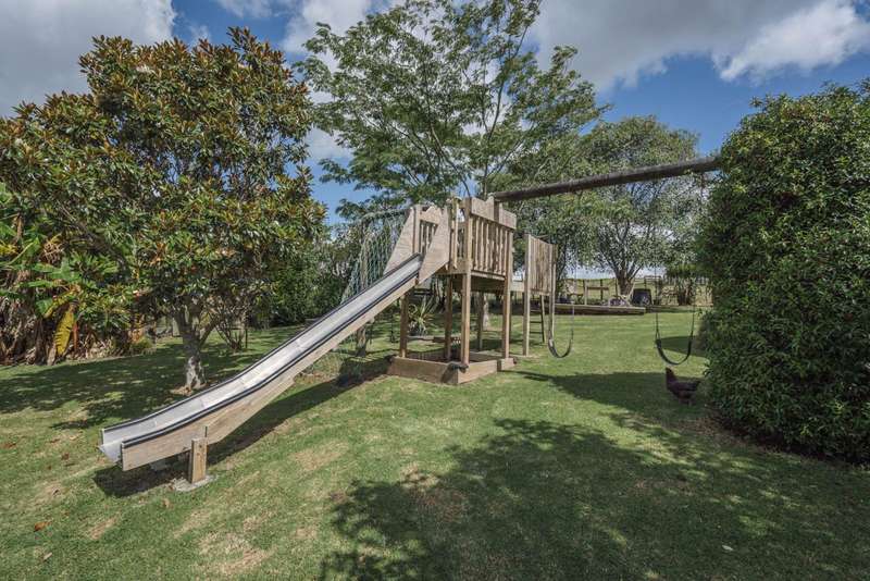 Discover your family’s dream with this 10000m2 abundant lifestyle property in a peaceful and picturesque setting. The main lounge and kitchen are open plan and lead out to the huge north facing covered deck with views over to the sprawling backyard, lake and hills beyond. Three bedrooms, 1 office and a rumpus/2nd family room room cater for the whole family, and the huge garage/workshop will house tools, boats etc. This would be the ideal tradesperson’s home workspace and storage as the shed is away from the main home, reducing noise to the family hub. The kids and pets will be spoiled for choice with both front and backyards to play, plus they have already got a playhouse , playground and swimming pool! The chickens will be very content in the extra-large coop with laying boxes and 2 garden sheds allow for plenty of extra storage for the gardener of the family. Bathing will be a luxury in the outdoor bathtub, looking up to the stars while sipping a cold beer or wine. The lush green backyard leads to established fruit trees and garden beds, and another sunny lawn lined with trees that could potentially be a lovely spot to build a minor dwelling, studio or a transportable home if permitted. The fenced paddock at the bottom of the property could offer grazing for animals if desired. Bring your walking shoes and explore all there is to offer on this piece of paradise so close to both Mangawhai and Kaiwaka.