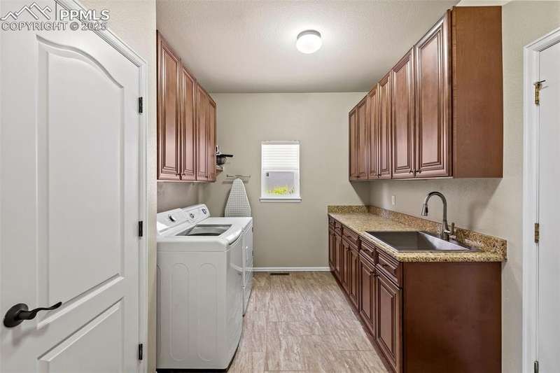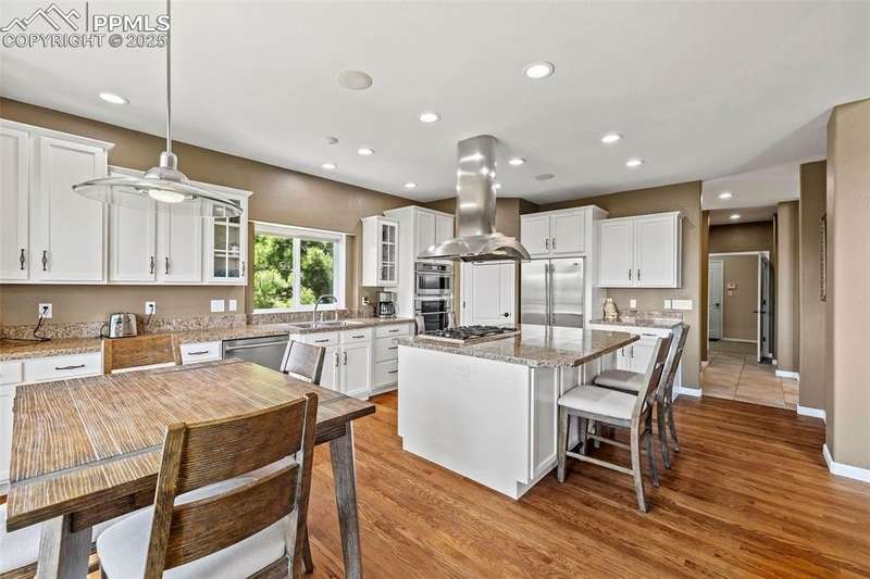 Welcome to this exceptional ranch-style home, nestled on a private cul-de-sac lot that backs up to pristine nature and open space. With over 5,300 square feet of luxurious living space, this home offers the perfect combination of tranquility and modern comfort. The heart of the home is an open-concept living, dining, and custom kitchen area, perfect for entertaining family and friends. The chef-inspired kitchen is a true highlight, featuring top-of-the-line finishes and plenty of space to create memorable meals. The spacious main level features 3 generously-sized bedrooms, including a spectacular primary suite that will take your breath away. The primary suite boasts a luxury 5-piece bathroom, complete with a freestanding modern tub, a multi-jetted steam shower, heated floors, and a huge custom walk-in closet. Beautiful hardwood and tile flooring flows throughout the main level, and all bathrooms feature elegant granite countertops. The fully remodeled laundry room on the main level is a dream, offering modern finishes and plenty of storage, making everyday tasks a breeze. The finished basement is equally impressive, with 2 additional bedrooms, a full bathroom, a very large family room, and a stylish bar area – ideal for game nights or cozy movie marathons. Step outside to your covered back composite deck and enjoy breathtaking sunrises to the east, while taking in the serene beauty of the surrounding nature. With a large 3-car garage, this home has it all. Don't miss the opportunity to own this stunning property that combines modern luxury with peaceful seclusion.