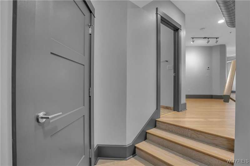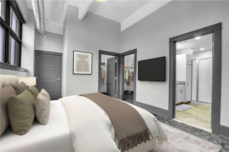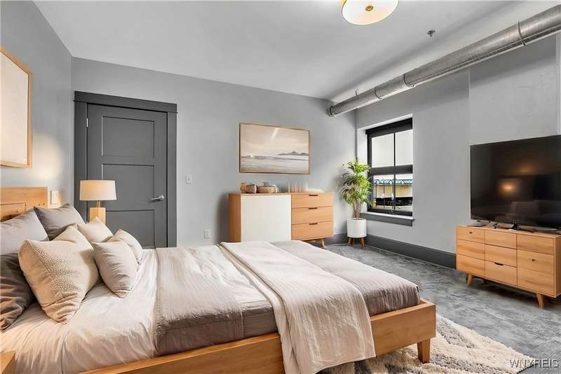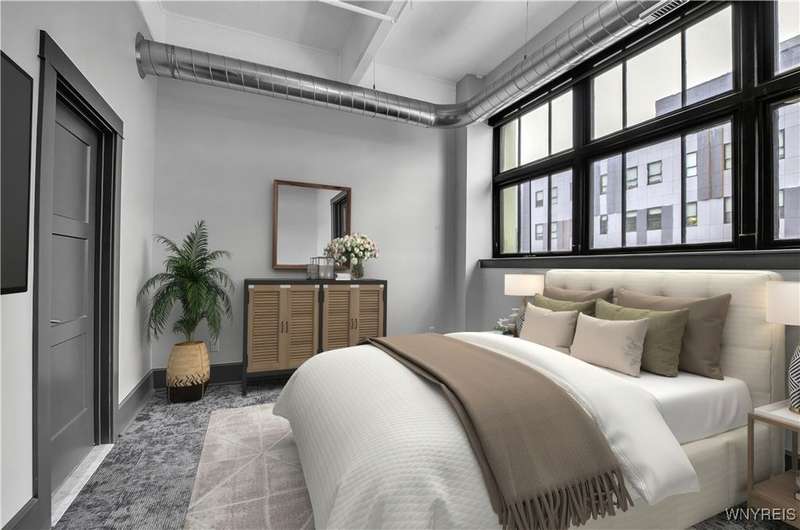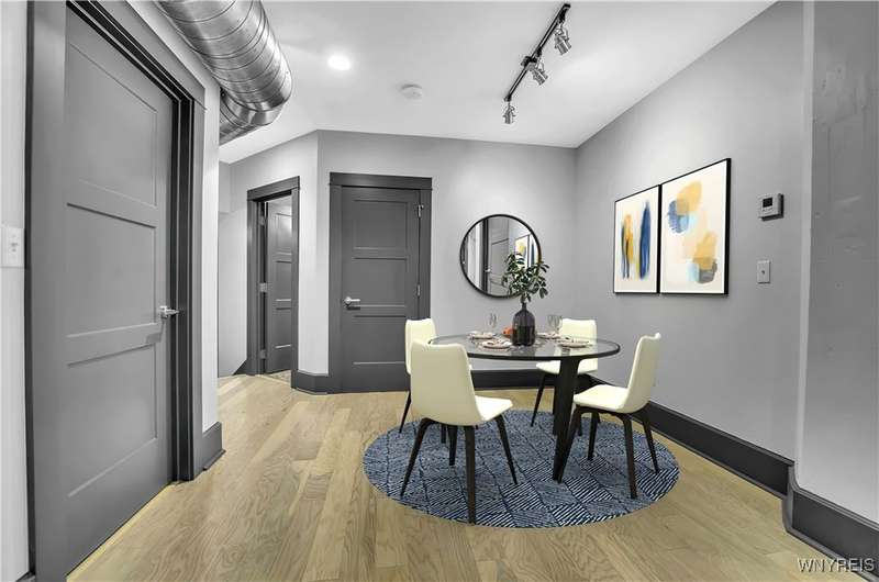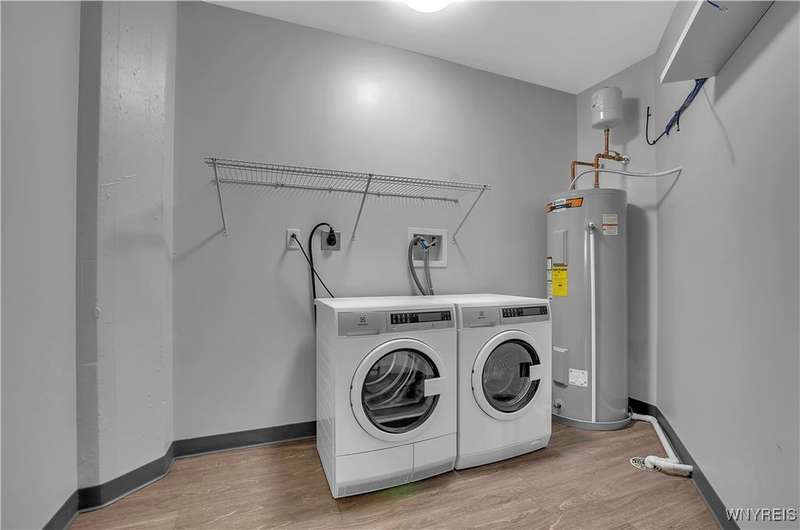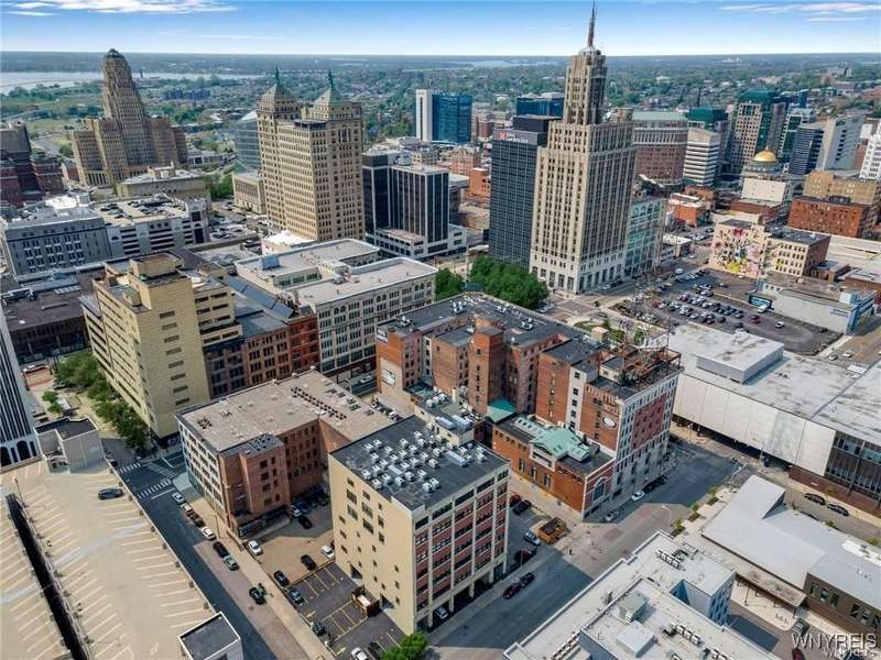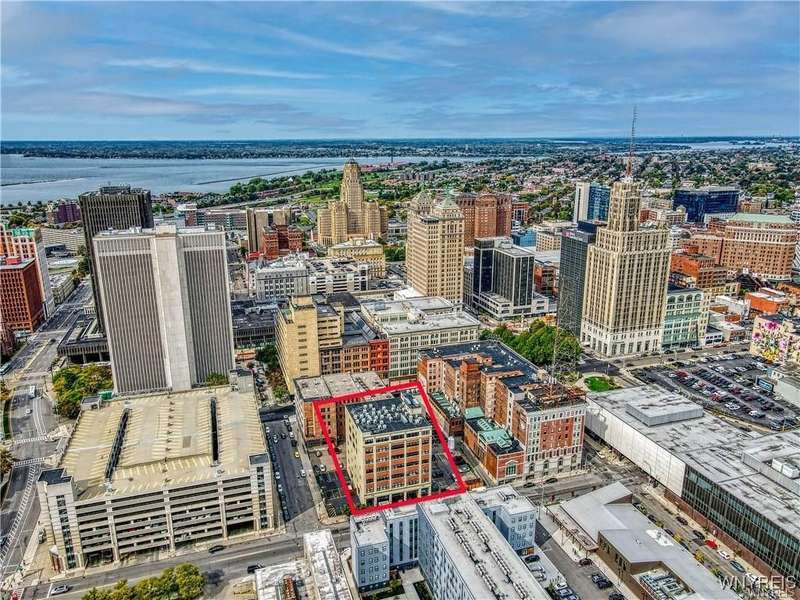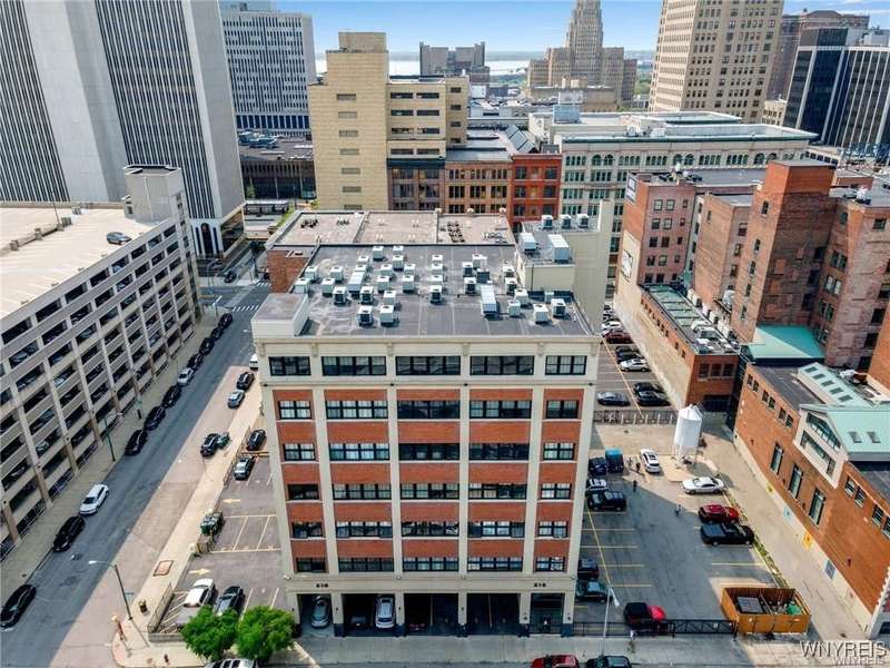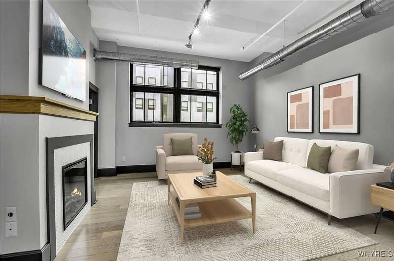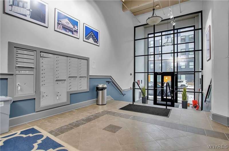 Built in 2020, this pristine corner unit at The Historic Warehouse Condominiums offers over 1,500 square feet of thoughtfully designed living space, with all major mechanics just five years old. Absolutely move-in ready, it showcases elegant, perfectly maintained hardwood floors, stainless steel appliances, and a spacious layout that captures natural light throughout the day. The premium corner position enhances brightness, thanks to gorgeous windows?outfitted with remote-controlled blinds for effortless privacy and light control. The primary bedroom features two generous walk-in closets and a luxurious glamour bath, while the large in-unit laundry room adds everyday convenience. Included are two side-by-side covered parking spaces with EVR. Set within walking distance of Buffalo's celebrated restaurants and entertainment venues, and just minutes from the Medical Corridor, UB, and more, this home pairs modern comfort with exceptional location?truly a rare opportunity.