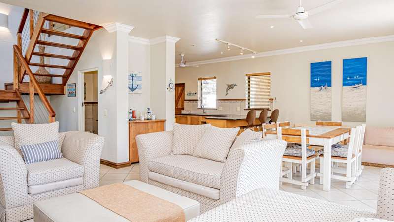 This is a great unit, within a sought after complex, located within the Nkwazi Ridge Estate. The unit comprises an open-plan living area on the lower level, which includes the kitchen, scullery, dining area and lounge that leads to a generous covered patio, deck and a built-in braai. There is also a guest loo on this level. The 3 spacious bedrooms are located upstairs. The enormous main bedroom has a full en-suite bathroom and sliding doors that lead to a covered balcony that runs the width of the home. The other 2 bedrooms share a full bathroom and both have sliding doors leading to another covered balcony that overlooks the back of the property. The unit also has a single garage that leads into the scullery, 1 covered parking and 2 uncovered parking spaces. There is the option of this great property being sold with all of the contents included. The estate enjoys a wonderful communal area that features a 20m lap pool, a kiddies pool, tennis court, clubhouse, jungle gym, beautiful park area and clubhouse. The levy rate stated includes the levy for the sectional title development and for the estate.
