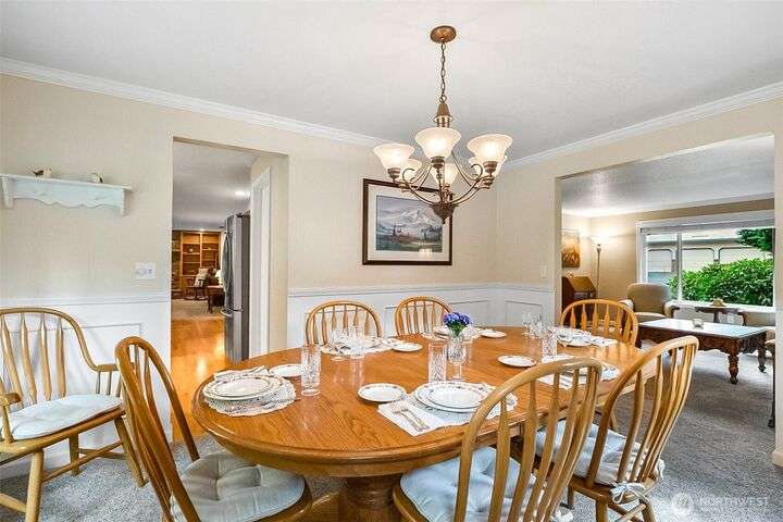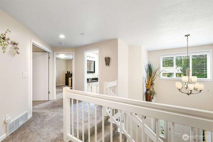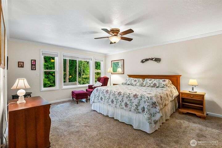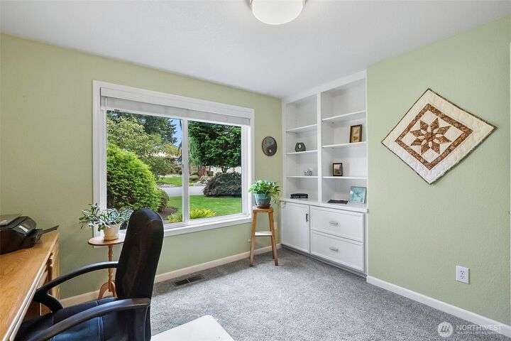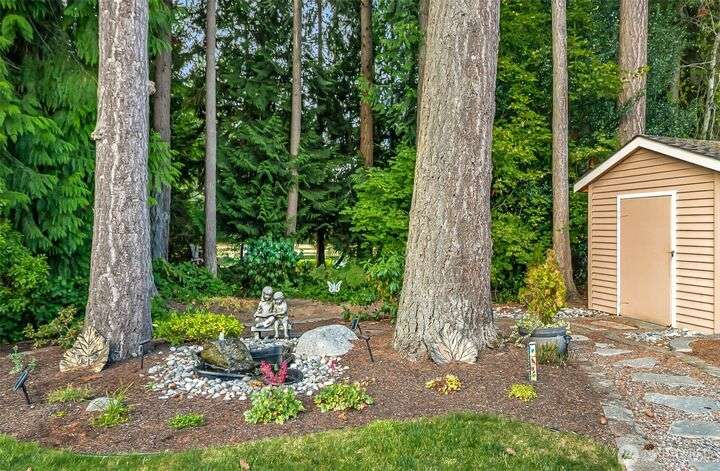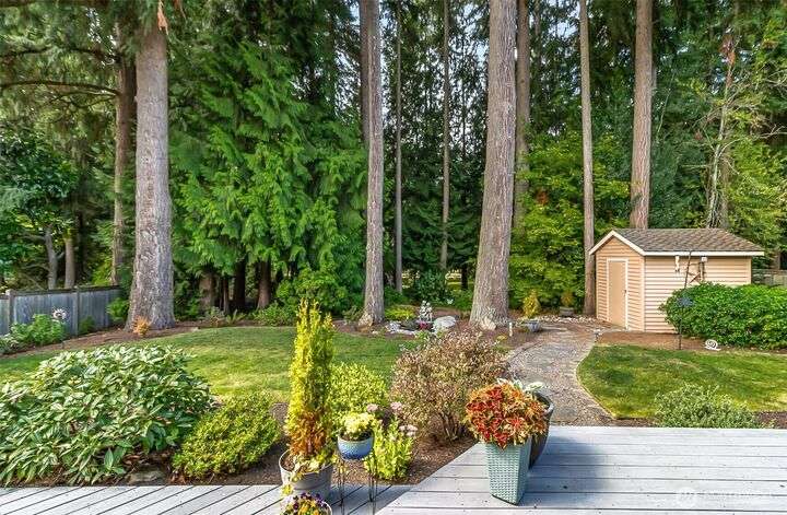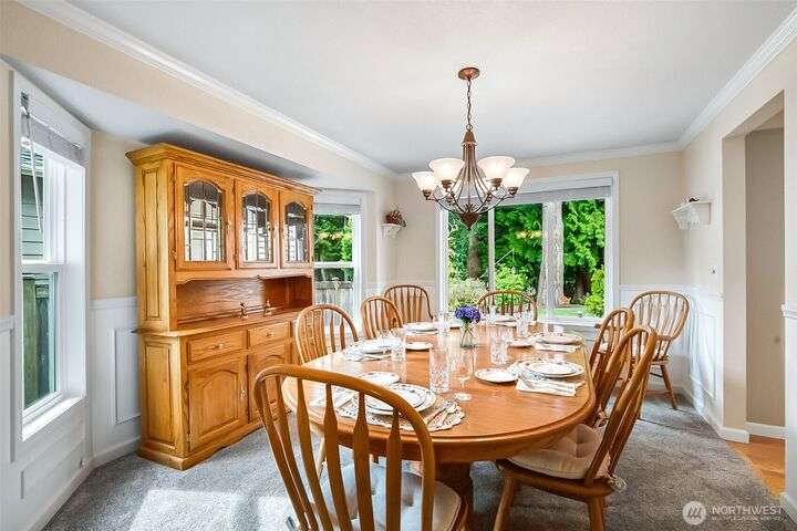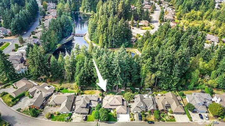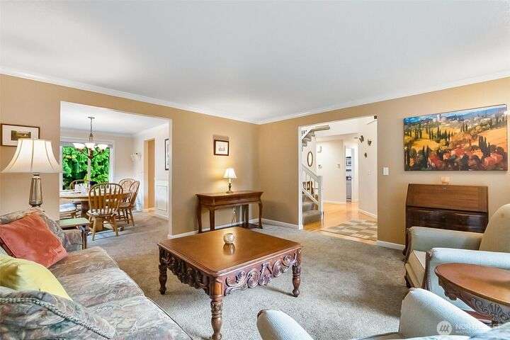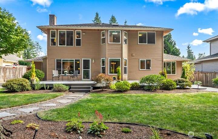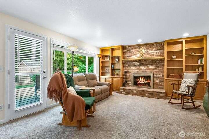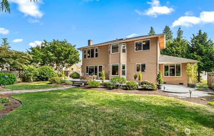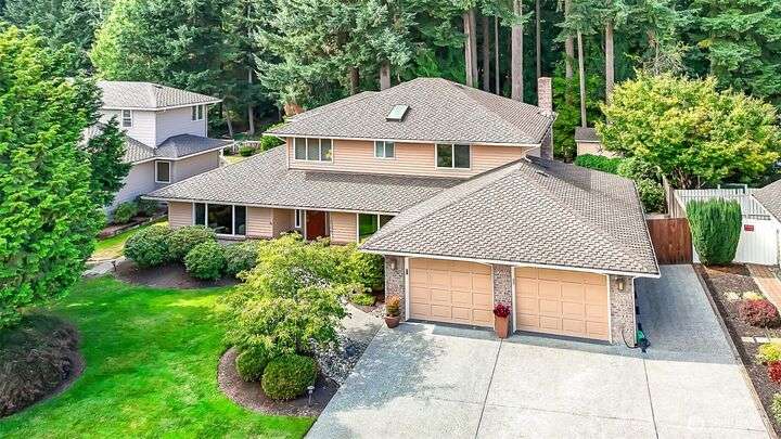 Spacious and well-appointed home nestled in the desirable Pioneer Trails neighborhood, backing directly to a serene lake for its ultimate natural beauty. Main floor offers a functional & elegant layout featuring a bright living room, formal dining room, well-designed Kitchen w/walk-in pantry, dinette area, cozy family room w/fireplace, den/office, half bath, and laundry room. Upstairs, the generous Primary Suite w/walk-in closet & 5-piece bath, 2-add'l bedrooms & full hall bath. Beautiful deck overlooks lush landscaping. Attached 2-Car Garage includes built-in shop area & storage cabinets—perfect for projects! Ample driveway parking. This home combines comfort, function, and a rare lakeside setting—don’t miss your chance to make it yours!