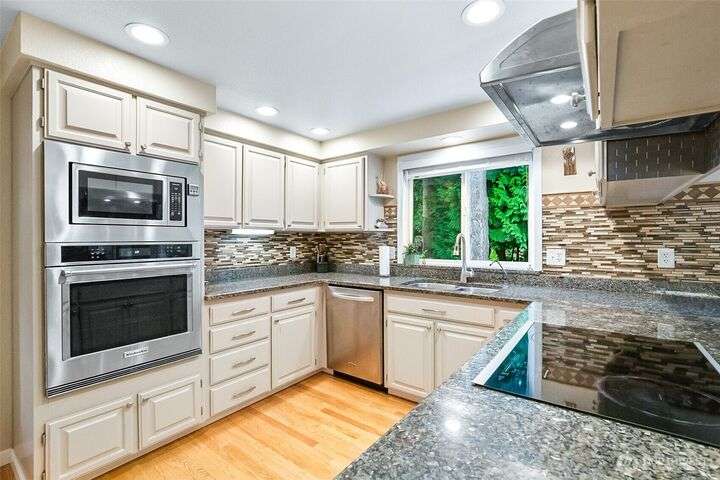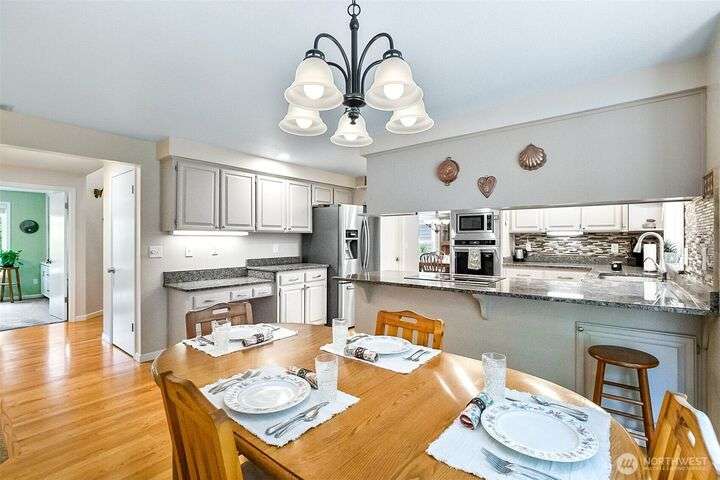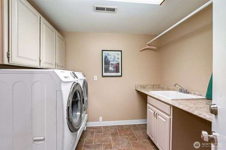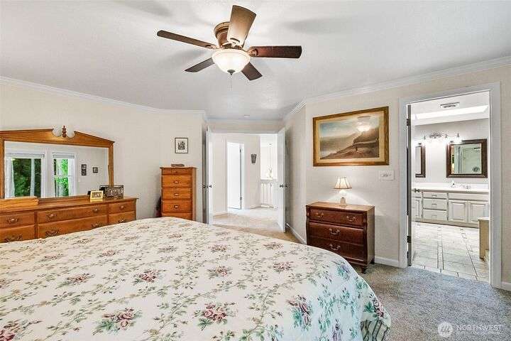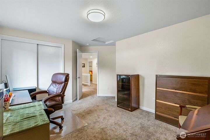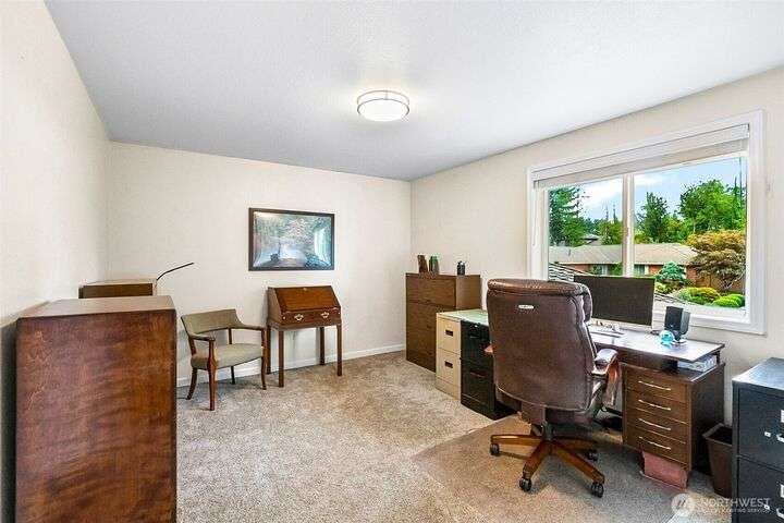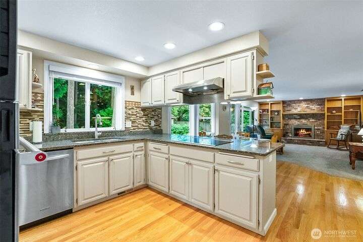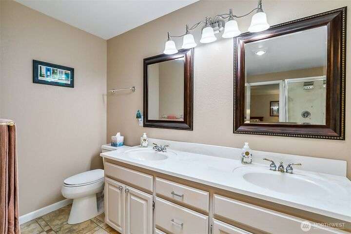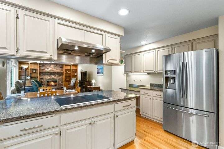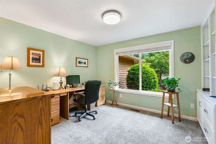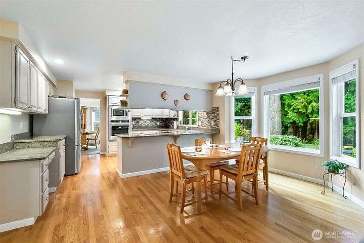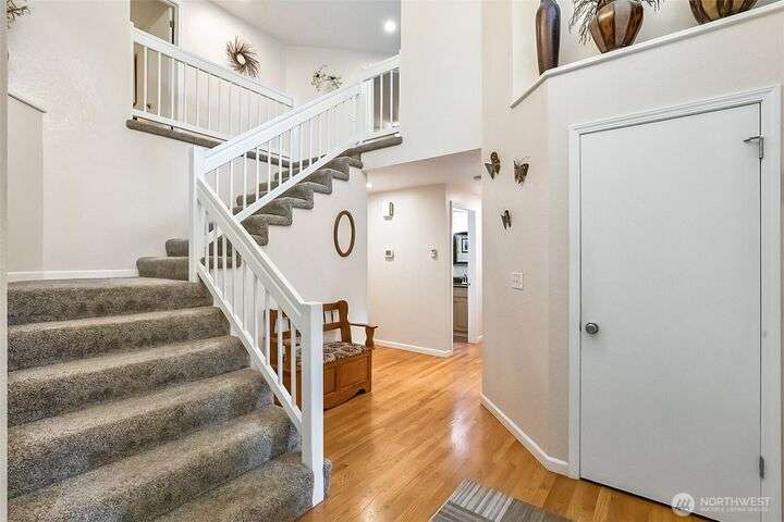 Spacious and well-appointed home nestled in the desirable Pioneer Trails neighborhood, backing directly to a serene lake for its ultimate natural beauty. Main floor offers a functional & elegant layout featuring a bright living room, formal dining room, well-designed Kitchen w/walk-in pantry, dinette area, cozy family room w/fireplace, den/office, half bath, and laundry room. Upstairs, the generous Primary Suite w/walk-in closet & 5-piece bath, 2-add'l bedrooms & full hall bath. Beautiful deck overlooks lush landscaping. Attached 2-Car Garage includes built-in shop area & storage cabinets—perfect for projects! Ample driveway parking. This home combines comfort, function, and a rare lakeside setting—don’t miss your chance to make it yours!