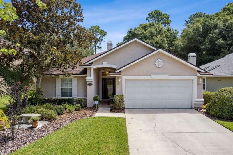 Welcome to North Hampton Living at Its Finest! This beautifully maintained one-owner single-story home is nestled in the sought-after North Hampton golf course community, featuring a semi-private Arnold Palmer-designed course open to the public, complete with a clubhouse and restaurant. Enjoy resort-style amenities including a lap pool, kids splash zone, tennis and pickleball courts, multi-use sports field, playground, and the scenic Lofton Creek Outpost?a private retreat with a kayak launch, fishing dock, BBQ pits, screened dining area, and deck perfect for family gatherings and outdoor fun. Inside, the home offers peace of mind with a newer roof and AC system, and a thoughtfully designed layout. The owners suite features a separate walk-in shower and relaxing garden tub. A versatile 4th bedroom at the front of the home doubles as the perfect home office, while the covered and screened back patio opens to a spacious, fenced-in yard?ideal for pets, play, or entertaining. Set along a peaceful semi-circle street, the property enjoys added privacy thanks to an HOA-maintained landscaped island that separates it from the main road. HOA dues include cable, high-speed internet, and security system monitoring?offering true value and convenience. Dont miss your chance to live in one of the area's premier communities with top-tier amenities and a welcoming neighborhood vibe.