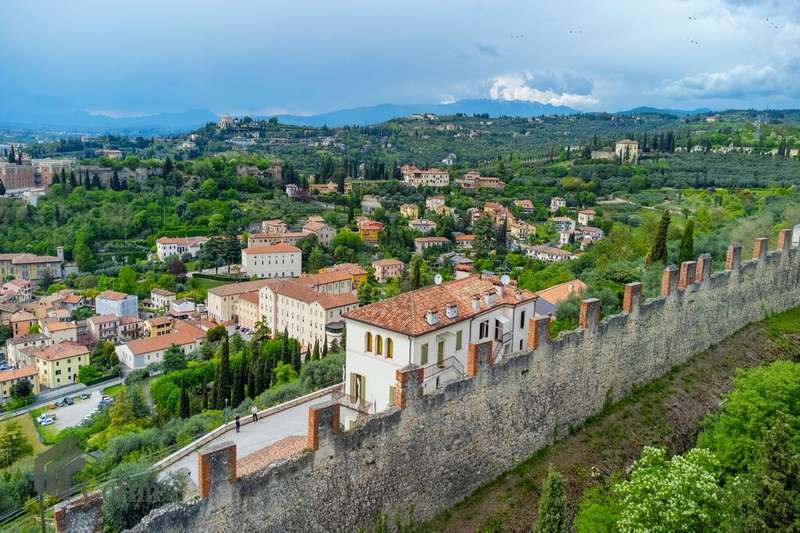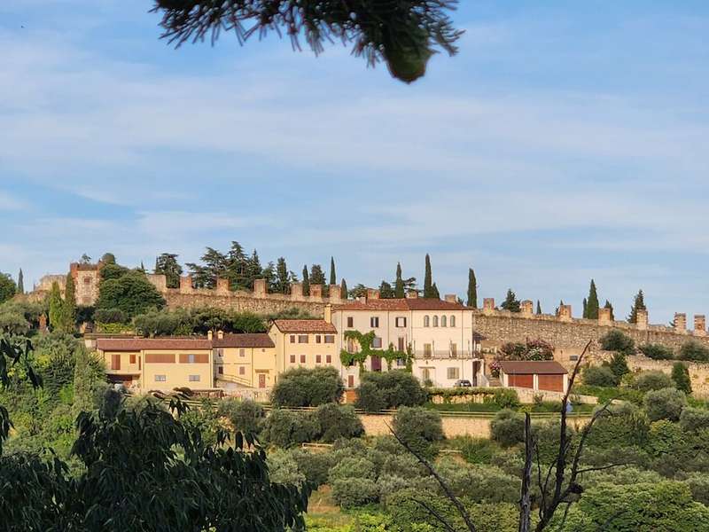 In a splendid residential complex, a stone's throw from the Don Calabria Institute, with a panoramic view of the city of Verona, a charming and elegant two-level apartment furnished with kitchen and wardrobes, totally renovated with taste and quality materials, is offered for rent. . On the ground floor there is a comfortable living area, consisting of a lounge/dining room with open kitchen and fireplace, utility room/laundry room, small bathroom. From the kitchen you can access the cellar, located on the same level, very characteristic being created inside a cave and also access a small garden of exclusive property of approximately 300 m2. On the upper floor, there is the sleeping area with three bedrooms, two of which are double, bright and with an amazing view of the city and two bathrooms with walk-in shower.A large balcony and many windows overlooking the spectacular urban landscape make the apartment exclusive and very suggestive.There is underfloor heating and there is also an air conditioning and alarm system. The property includes a fully glazed and air-conditioned large warehouse used as a garage or gym, as well as a large cellar and a 6000 m2 of land used as a vegetable garden.