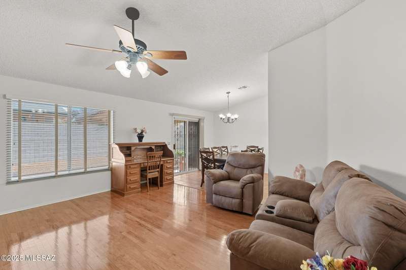 Come see this well maintained 3 bed/2bth home! This inviting home features a spacious kitchen with a brand-new stove, island, and cozy breakfast nook. Enjoy a separate dining area and a generously sized family room.You'll love the tile and wood flooring throughout the living areas and halls, offering both style and easy maintenance. The home has also been re-piped, giving you peace of mind. The easy-care backyard is move-in ready or offers a blank canvas for your personal landscaping touch. All appliances are included in the sale, along with a soft water system and reverse osmosis. Plus, most of the furniture is available through a separate bill of sale, making your move-in even easier. Mountain views from the backyard. Don't miss the chance to make this beautiful home your own!
