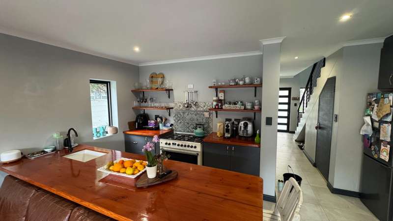 Nestled in an established neighbourhood in the southern part of Paarl, this stylish double-storey townhouse offers a perfect blend of comfort, convenience, and contemporary living. Ideally located close to the N1 highway, the Franschhoek off-ramp, and surrounded by renowned wine estates, this property promises both lifestyle and investment value. The townhouse features three well-sized bedrooms?Çöall located upstairs?Çöalong with two modern bathrooms and an additional guest toilet downstairs. The main bedroom opens onto a balcony with lovely views of the surrounding mountains. The open-plan living and kitchen area is thoughtfully designed with modern finishes, including a gas stove, sleek black bathroom fittings, and a tasteful combination of tiled and laminated flooring. Large sliding doors open onto a private patio and a quaint, pet-friendly garden?Çöideal for stepping outside just to breathe. Additional features of the property include a single garage with an extra open parking space, offering convenience for multiple vehicles. It is equipped with pre-paid electricity, fibre and a solar geyser for energy efficiency. A 100-litre water tank provides added water storage. Modern lighting throughout the home enhances its contemporary feel, and the overall layout offers excellent lock-and-go appeal, perfect for those seeking low-maintenance living. This home is a fantastic investment opportunity in a prime location, whether you're buying for yourself or as a rental income generator. Stylish, secure, and move-in ready Kindly contact me so I can introduce you to this space