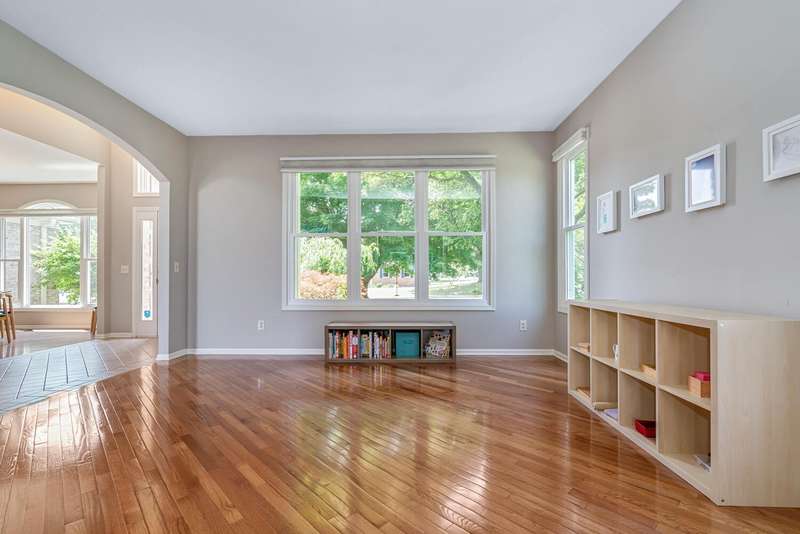 Enjoy serene cul-de-sac living in the highly sought-after Woodbridge Hills neighborhood. This spacious 5-bed, 3.5-bath home offers over 3,860 finished sqft and sits on the 3rd fairway of The Moors Golf Club with picturesque views throughout. A double-height great room with a wall of windows and hardwood floors fills with natural light from new Pella windows (2024). The open layout flows from the great room to a kitchen with quartz counters, tile backsplash, SS appliances, and deck access. Main floor includes formal dining, office/den, laundry, and half bath. Upstairs: a catwalk overlooks the living space and leads to a private primary suite with 2 walk-in closets, soaking tub, shower, and double vanity, plus 3 large bedrooms and full bath. The finished walk-out basement includes a guest suite, full bath, rec room, snack bar, and patio. Extras: water heater (2018), humidifier (2021), water softener (2022), RO system (2020), EV charger, 3-car garage, and in-ground sprinklers.