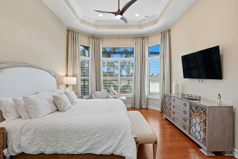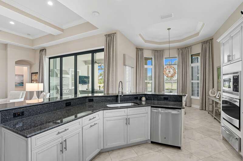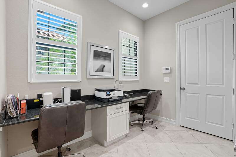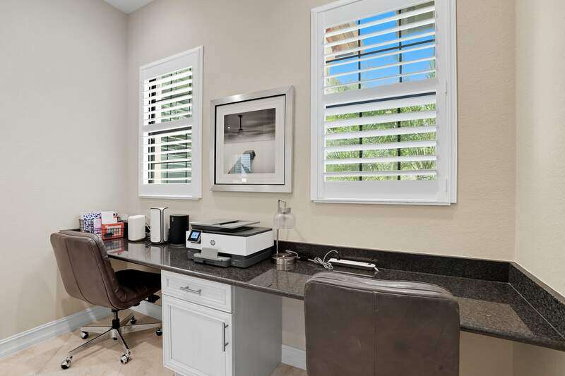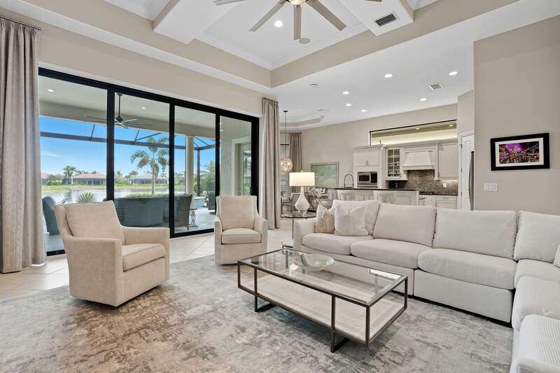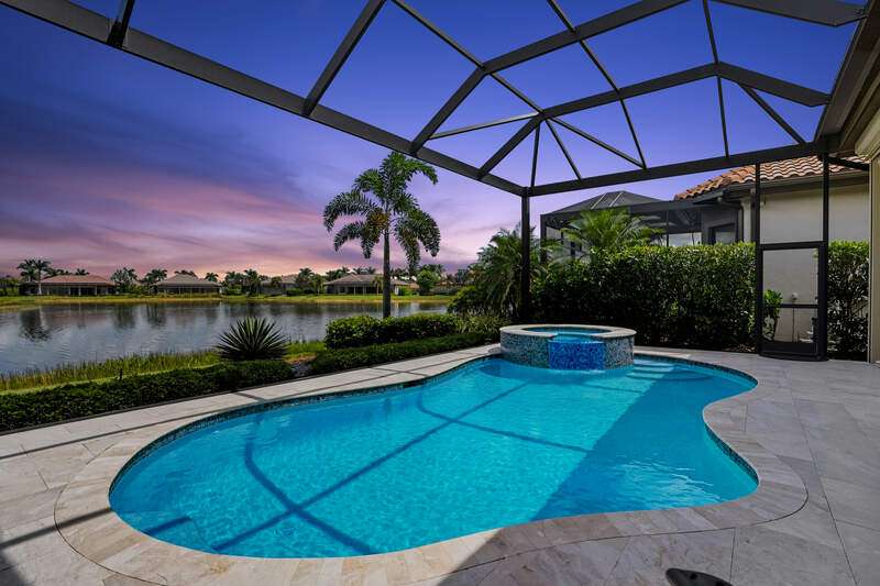 Step into this stunning residence with tranquil lake views in the exclusive Lakoya enclave of Lely Resort, where timeless elegance meets modern convenience. Designed with both sophistication and comfort in mind, this home offers a seamless blend of indoor and outdoor living, creating the perfect retreat for entertaining or simply enjoying the Naples lifestyle. From the sparkling pool and spa to the expansive lanai with a panoramic screen, outdoor kitchen, and natural gas cooking, every detail has been thoughtfully designed to showcase the beauty of Florida living at its finest. Inside, you'll find 4 bedrooms, a 2 desk office space off the garage, 3.5 baths, and a 3-car garage with a mini split AC unit. Recent upgrades provide both peace of mind and efficiency, including two new AC units, a new endless hot water system, new washer and dryer, plantation shutters, custom drapery, and a whole-house generator installed in 2022. The exterior also features professional landscaping, a freshly painted facade, professional landscape lighting, a new travertine pool deck, and a reimagined pool and spa. All impact windows and doors are complemented by Storm Smart shade protection, allowing you to conveniently keep your outdoor furniture on the under-roof lanai year-round. A new front door enhances the home's inviting curb appeal. Additional features include a new alarm system with a 10-year battery life and an insulated attic and crawl space for added AC efficiency. As a resident of Lakoya, you'll enjoy private membership to the renowned Players Club & Spa, featuring three resort-style pools, tennis, pickleball, bocce, grill room and veranda dining, the fabulous tiki bar with 13 TVs for sports viewing, poolside food and beverage service, a full-service spa, and a state-of-the-art attended fitness center. The tennis and pickleball area also hosts a pro shop and a mini grab-and-go cafe. Ideally located to downtown Naples, Marco Island's pristine beaches, shopping, and fine dining, this residence offers the luxurious Florida lifestyle you deserve.