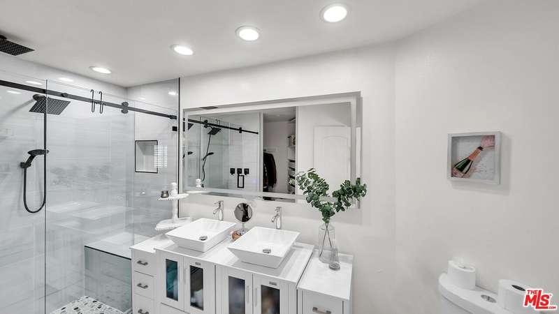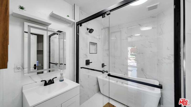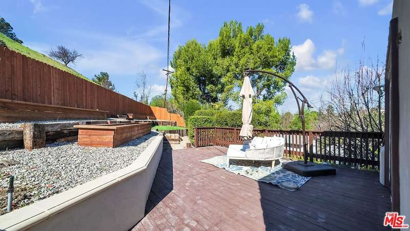 This beautifully updated South of the BLVD home boasts a perfect blend of modern amenities and classic charm, offering 5 spacious bedrooms and 4 bathrooms with INCOME earning potential. A SEPARATE bedroom and Full bathroom with a private entrance, perfect for an in-law suite or can easily be made into an ADU. An inviting foyer leads to you to an elegant staircase, beaming with natural light to fill every room, creating a warm and welcoming atmosphere. The gourmet kitchen is a chef's dream, featuring sleek stone countertops, stainless steel appliances, and ample cabinetry, ideal for both cooking and entertaining. The spacious living room provides the perfect space for relaxing or hosting guests, with large sliding glass door leading to the sun-soaked balcony, offering picturesque views of the surrounding neighborhood. The tastefully updated Primary suite includes a fully remodeled Bathroom with white stone tiles and elegant vanity. Outside, the private backyard is a serene retreat, complete with a patio for al fresco dining, lush greenery, and plenty of space for outdoor activities. A family room with full wet-BAR is the perfect space to relax! This home is ideally located near top-rated schools, The Topanga Village mall offering - shopping, dining, and more! Close to multiple beautiful parks and trails Woodland Hills has to offer.