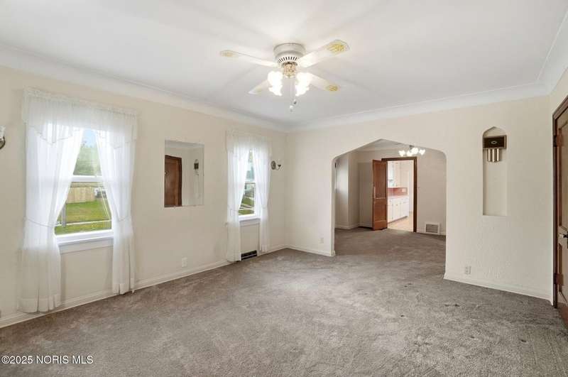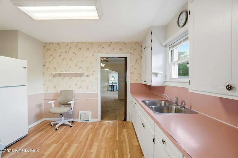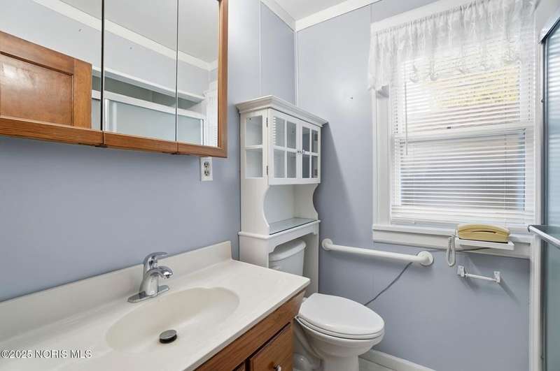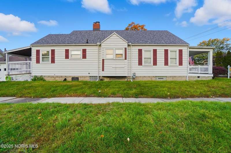 Many possibilities with your touches. Well built 3 bedroom home with a large front porch on a corner lot. The basement gives many options with a full bath and room that could be your 4th bedroom area, plus room for rec area and storage areas. New glass block windows. New sump pump w/battery back up. New roof 2025. Kitchen has good space with attached pantry space. There is a large walk up attic that is partially floored giving you yet another creative option. This 2 car garage is currently used as a 1 car with the other side a work bench area. All with a 1 yr. Home Warranty.