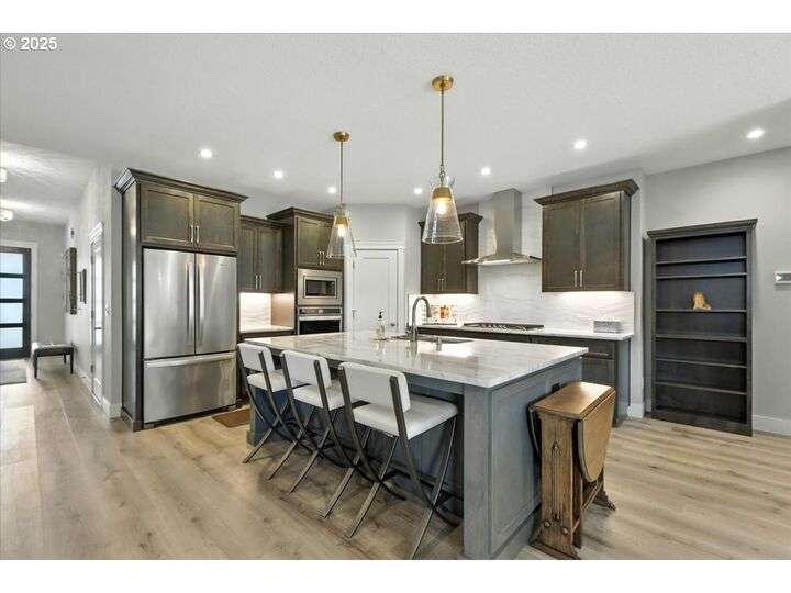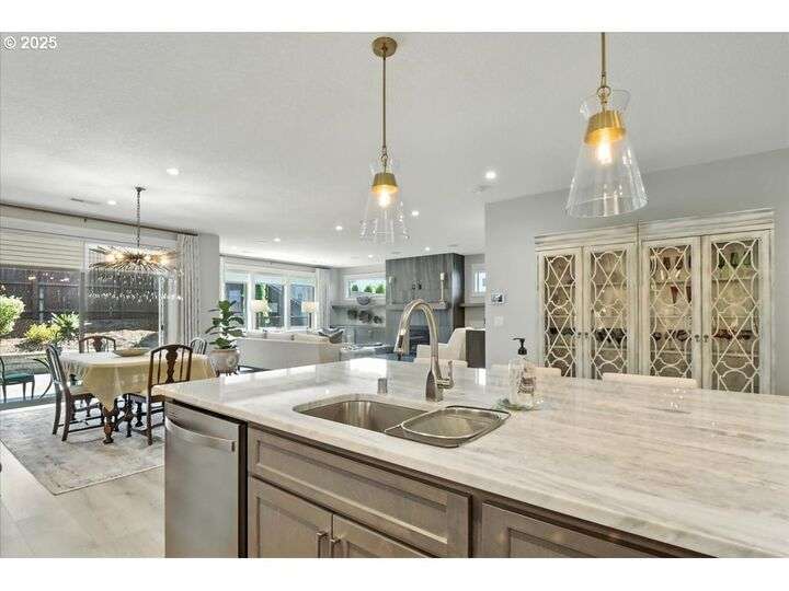 Formerly the Kingston model, this stunning one level home showcases custom cabinetry, a huge island, and slab quartz counters with a gas cooktop at the heart of the kitchen. The open great room features a cozy gas fireplace, built-ins and expansive windows that fill the space with natural light. Hard-surface flooring flows through most of the home, complemented by upgraded lighting throughout. Step outside to a large covered patio and enjoy an easy maintenance yard designed for relaxation and entertaining.The neightborhood park is right across the street. Great access to Legacy and Freeways. Open Sunday, 9/21 1pm-3pm
