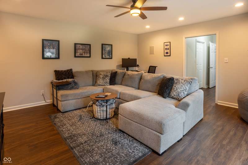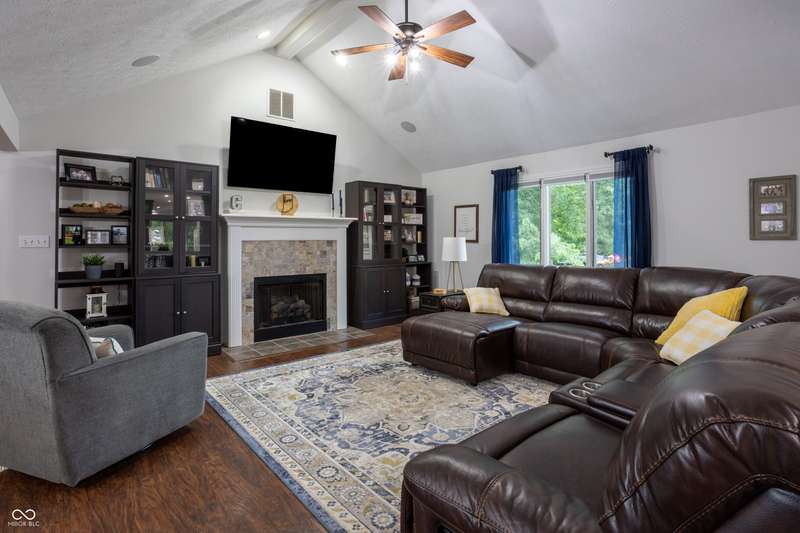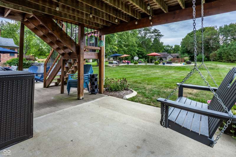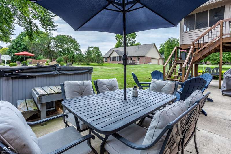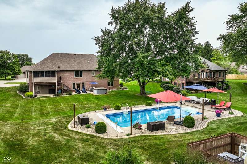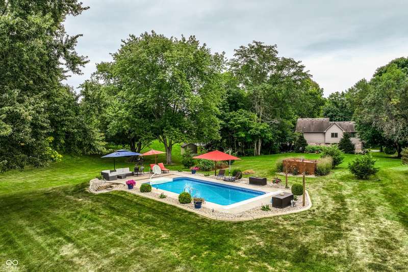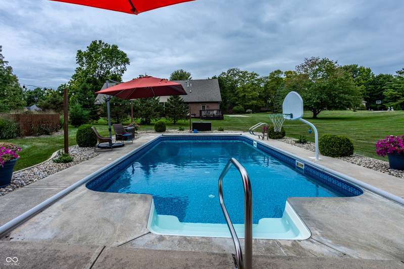 The home you've been waiting for all summer! Located in Pittsboro's highly sought-after Cambridge neighborhood, this 4 bedroom, 3.5 bath ranch with a finished basement blends modern updates with a true backyard oasis on .6 acres. A sparkling saltwater pool with a brand-new liner and automatic cover (2025) sets the stage for unforgettable summers. The kitchen, completely remodeled by Booher Construction in 2021, features custom cabinetry with soft-close doors and dovetail drawers, quartz countertops, and timeless design. Just off the kitchen, the screened-in back porch invites you to enjoy morning coffee or evening relaxation while overlooking the private backyard. Inside, thoughtful updates shine. With its vaulted ceilings and built-in speaker system, the great room is both open and inviting-an ideal spot for gathering with family and friends. The primary suite is a true retreat with a remodeled bath (2024) showcasing a subway tile shower and garden tub. With two additional bedrooms, another full bath, and fresh paint throughout (2025), the main level is bright and move-in ready! The walkout basement offers incredible versatility with a family room, wet bar, a fourth bedroom and full bath, plus a versatile workshop/storage area with a retractable garage door that easily transforms into an entertainment space for pool parties, a home gym or even parking your golf cart! From everyday comfort to weekend fun, every detail has been carefully crafted to balance luxury with livability. Move-in ready and designed to impress, this is the home you've been waiting for in North West Hendricks School District!