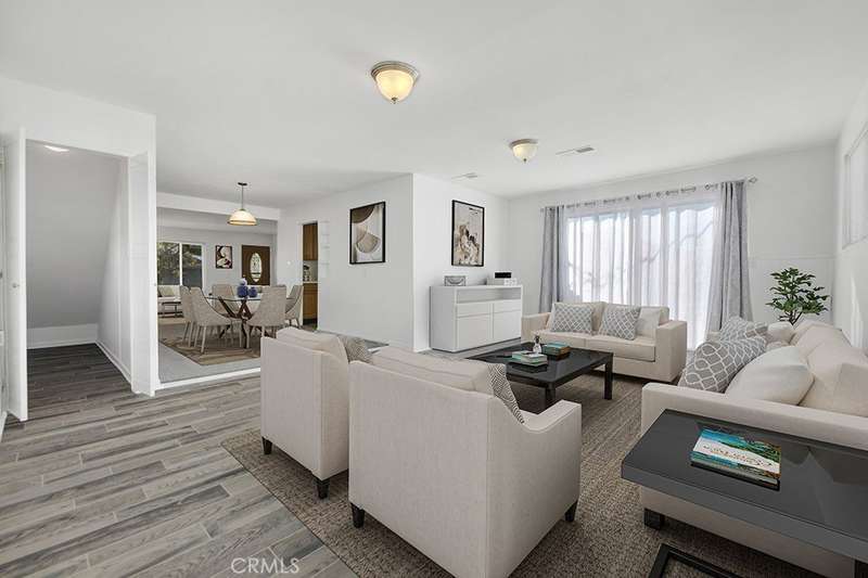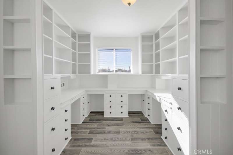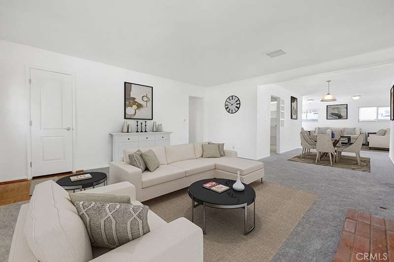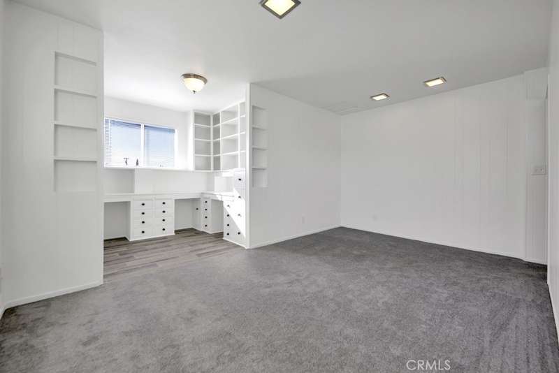 This unique and beautifully maintained two story 1950s home offers over 2,300 sq. ft. of versatile living space, featuring three bedrooms downstairs including one with a private en-suite bathroom with a walk-in shower and an additional primary retreat upstairs. The second level also includes an additional bedroom with built-in desk and cabinetry, creating an ideal space for a home office, study, or cozy reading nook. Thoughtful upgrades throughout the home include insulated vinyl siding, double-pane windows, and new carpet (2025). The spacious family room features laminate flooring and custom built-ins, while the separate living room provides added space for gathering and entertaining. The kitchen offers a gas stove, dishwasher, garbage disposal, lazy Susan, Formica countertops, and a stainless-steel refrigerator. Updated bathrooms include modern vanities and refreshed fixtures. Additional highlights include central HVAC with a newer A/C unit, a 1-year-old water heater, updated thermostats, block-wall fencing with iron gates, and a garage with an automatic door and laundry hookups. This wonderful home is easy to show, an opportunity you don’t want to miss!